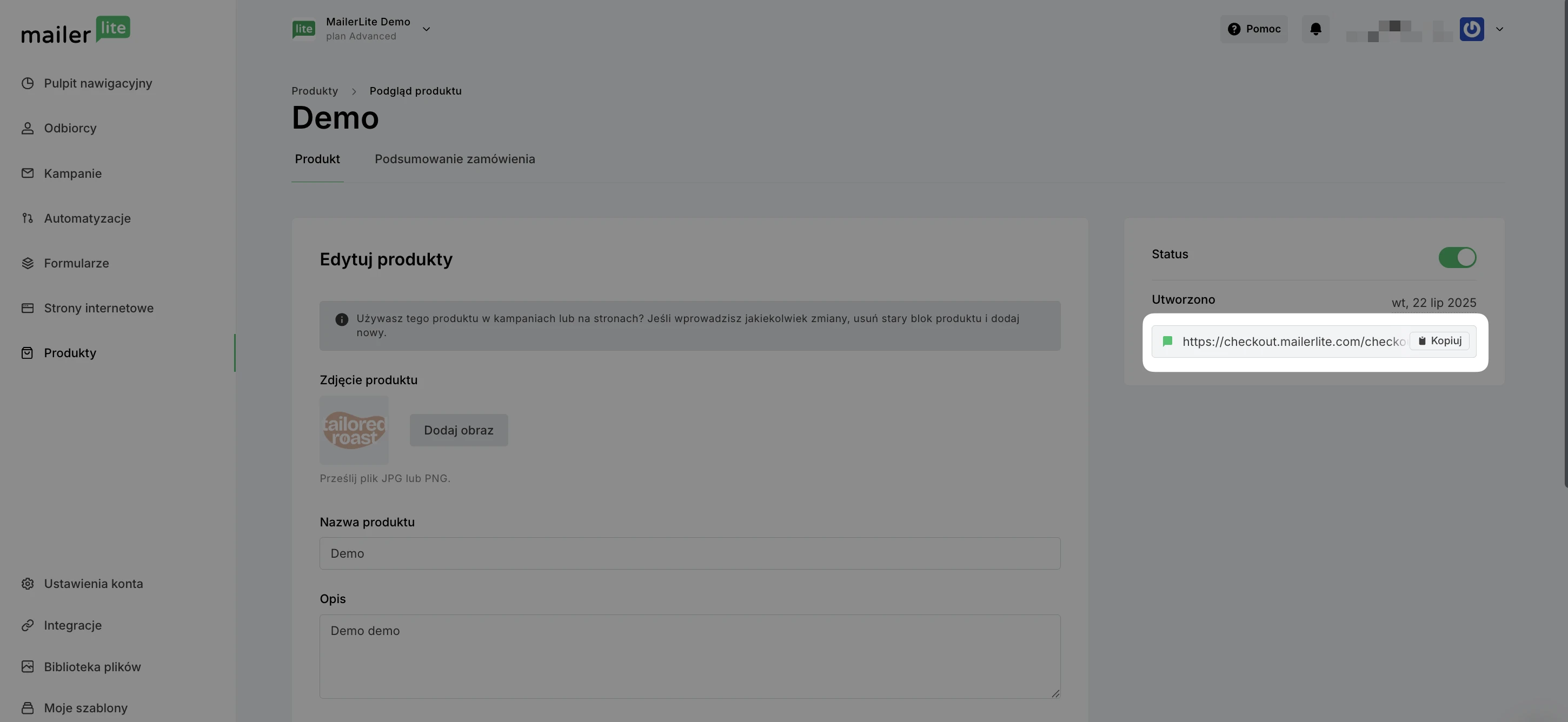 Aby szybko udostępnić swój produkt w mediach społecznościowych, skopiuj link do jego formularza zamówienia. Kiedy kupujący kliknie ten link, od razu otworzy się strona podsumowania zamówienia, a reszta procesu zakupu pozostanie bez zmian.
