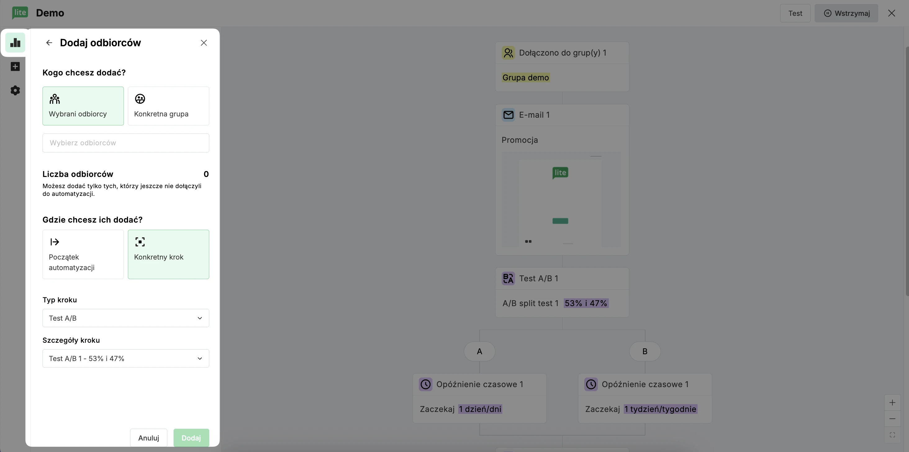 💡 Odbiorców można dodawać tylko do aktywnych automatyzacji.