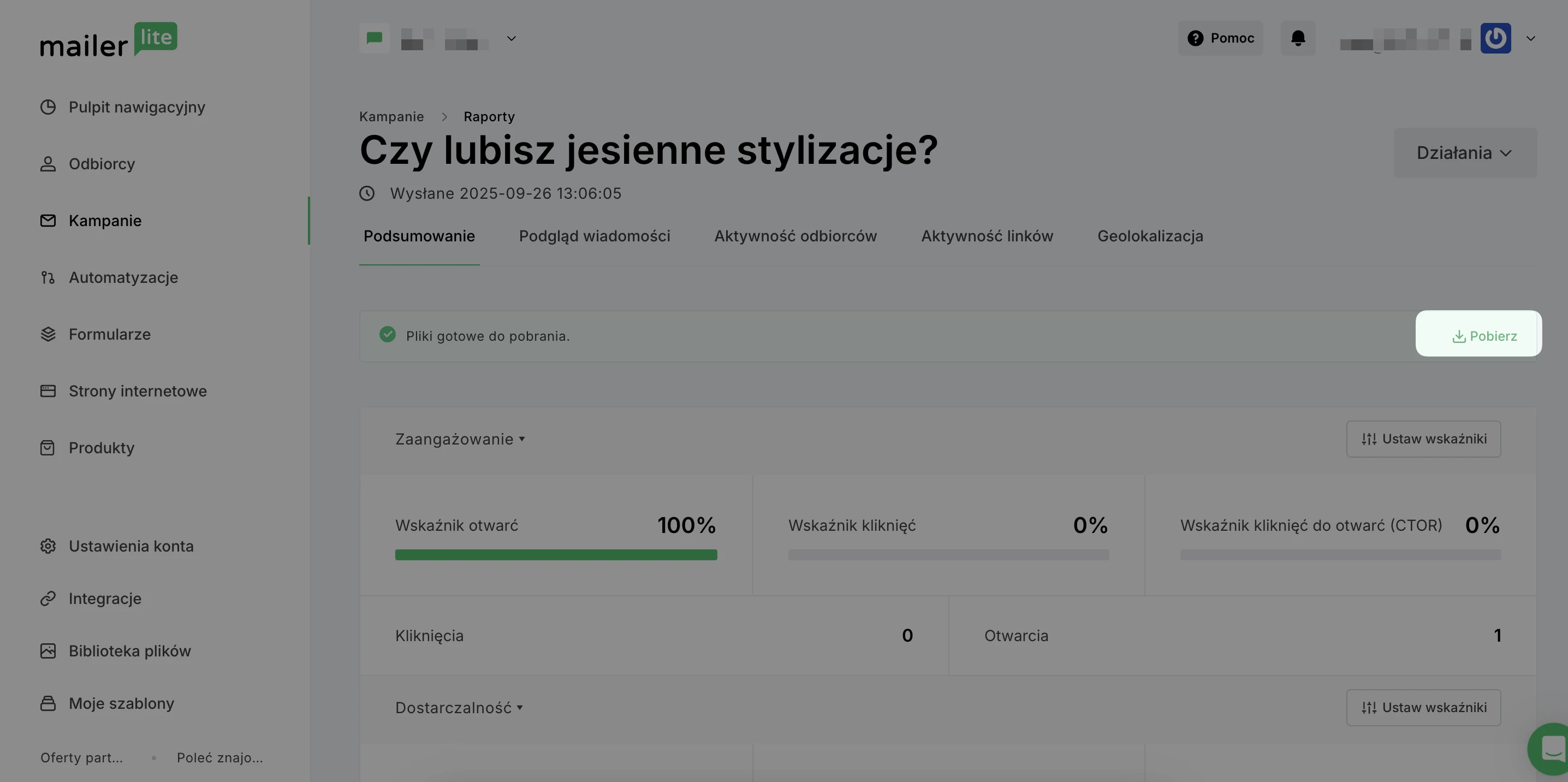 Kliknięcia - Liczba i procent subskrybentów, którzy kliknęli przynajmniej w jeden link w Twojej kampanii.