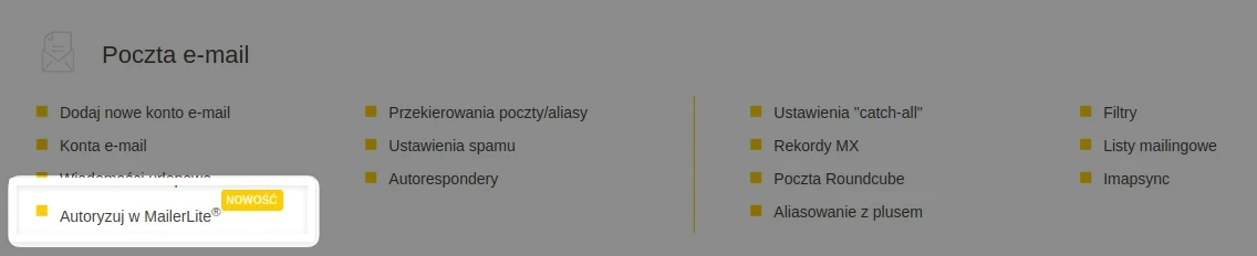5. W sekcji Poczta e-mail kliknij opcję Autoryzuj w MailerLite.