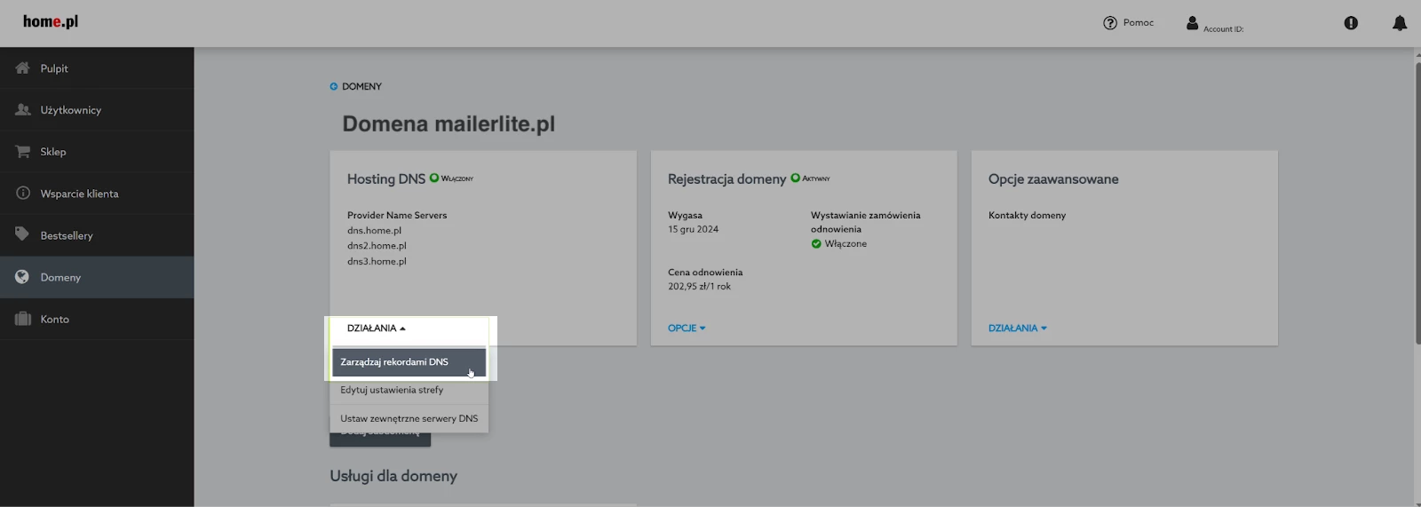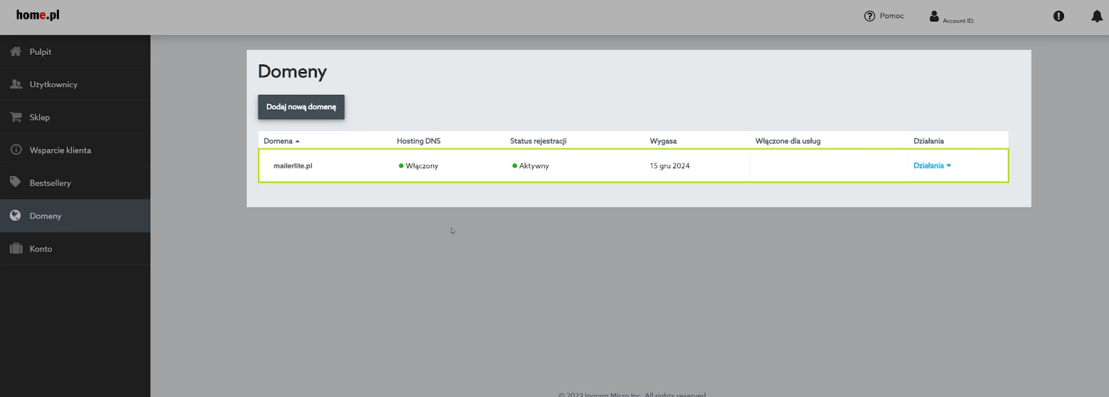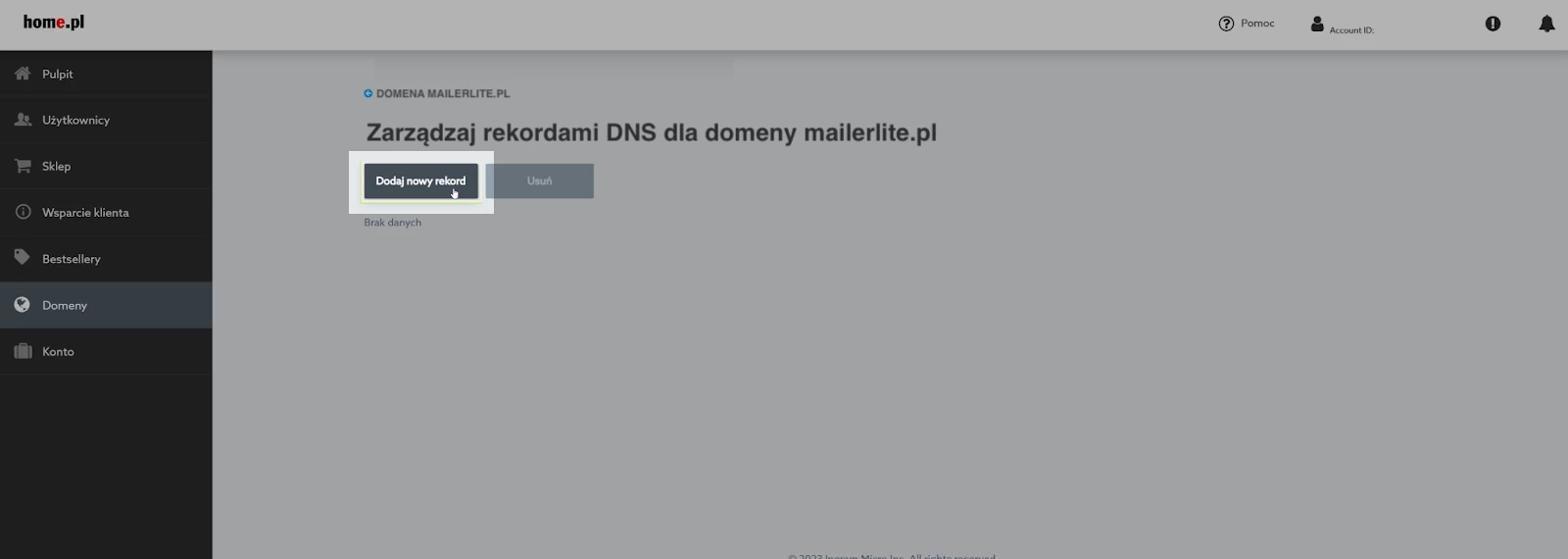 Ten artykuł jest przeznaczony dla osób, które już z powodzeniem zarejestrowały domenę w Home.pl. Utrzymanie rejestracji domeny będzie Ci potrzebne tak długo, jak będziesz korzystać z nazwy tej domeny nawet, gdy dokonasz już uwierzytelnienia w MailerLite.