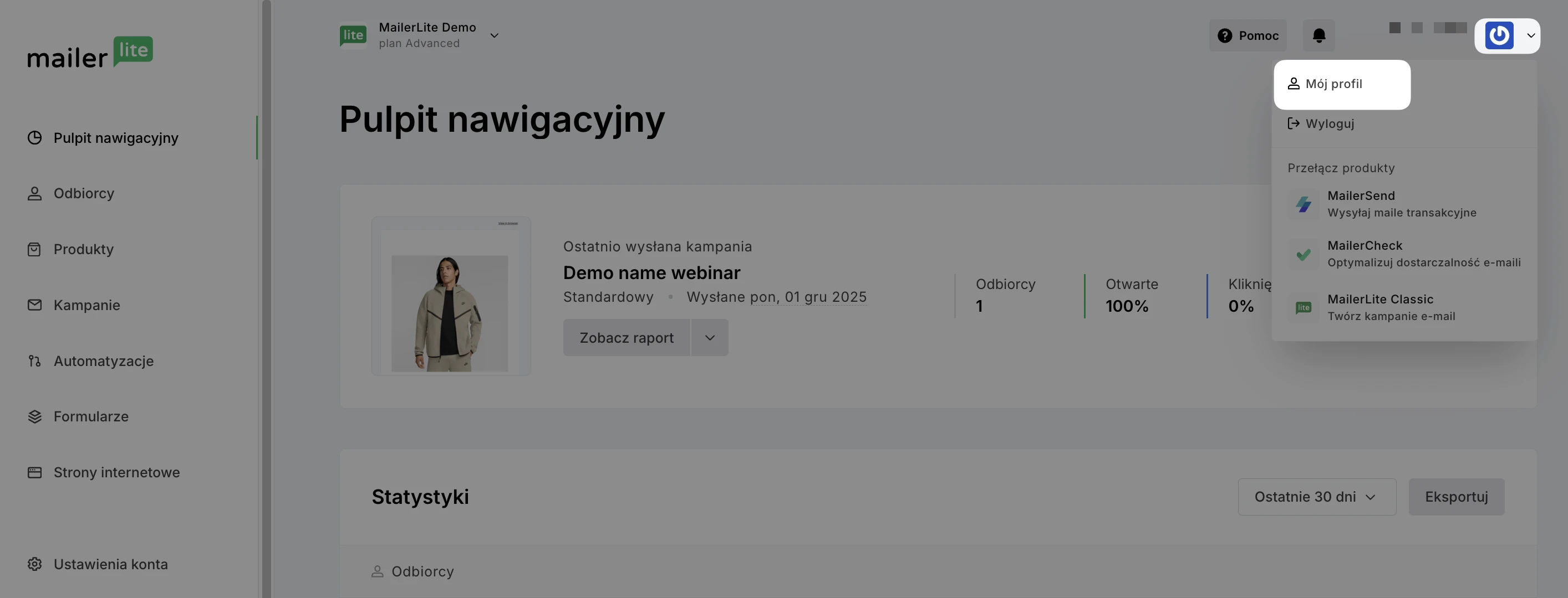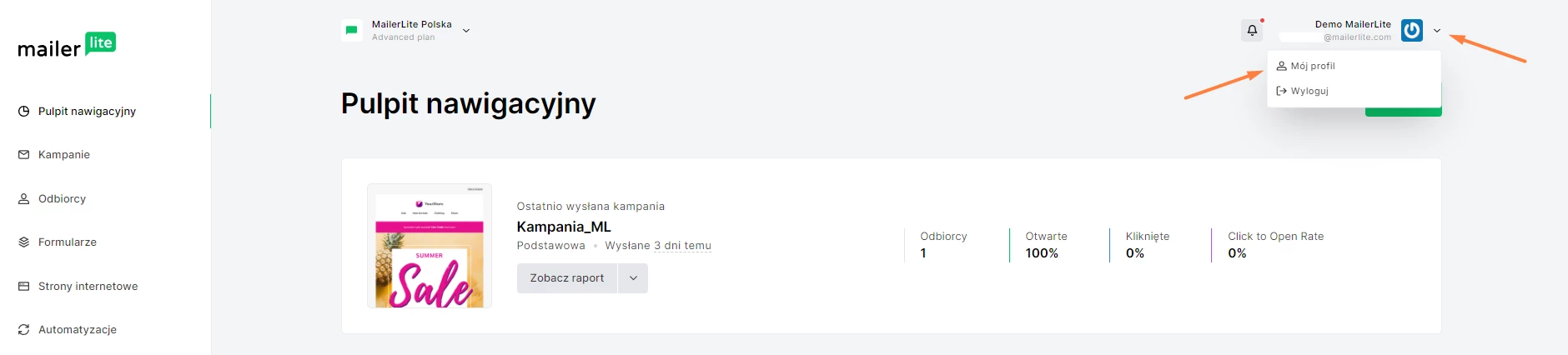 Przejdź do menu rozwijanego po prawej stronie i kliknij Mój profil.