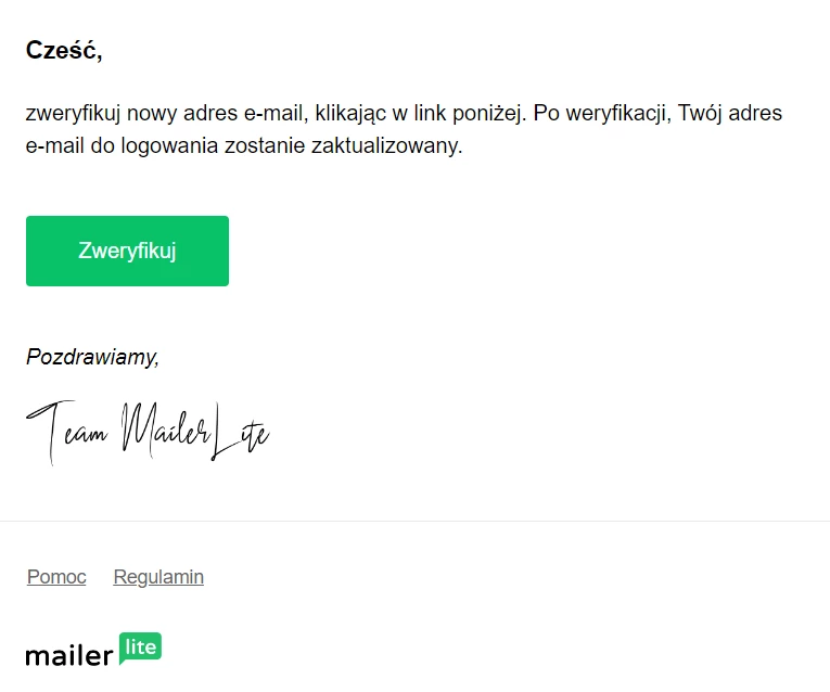 Po otrzymaniu wiadomości kliknij w niej przycisk Zweryfikuj adres e-mail.