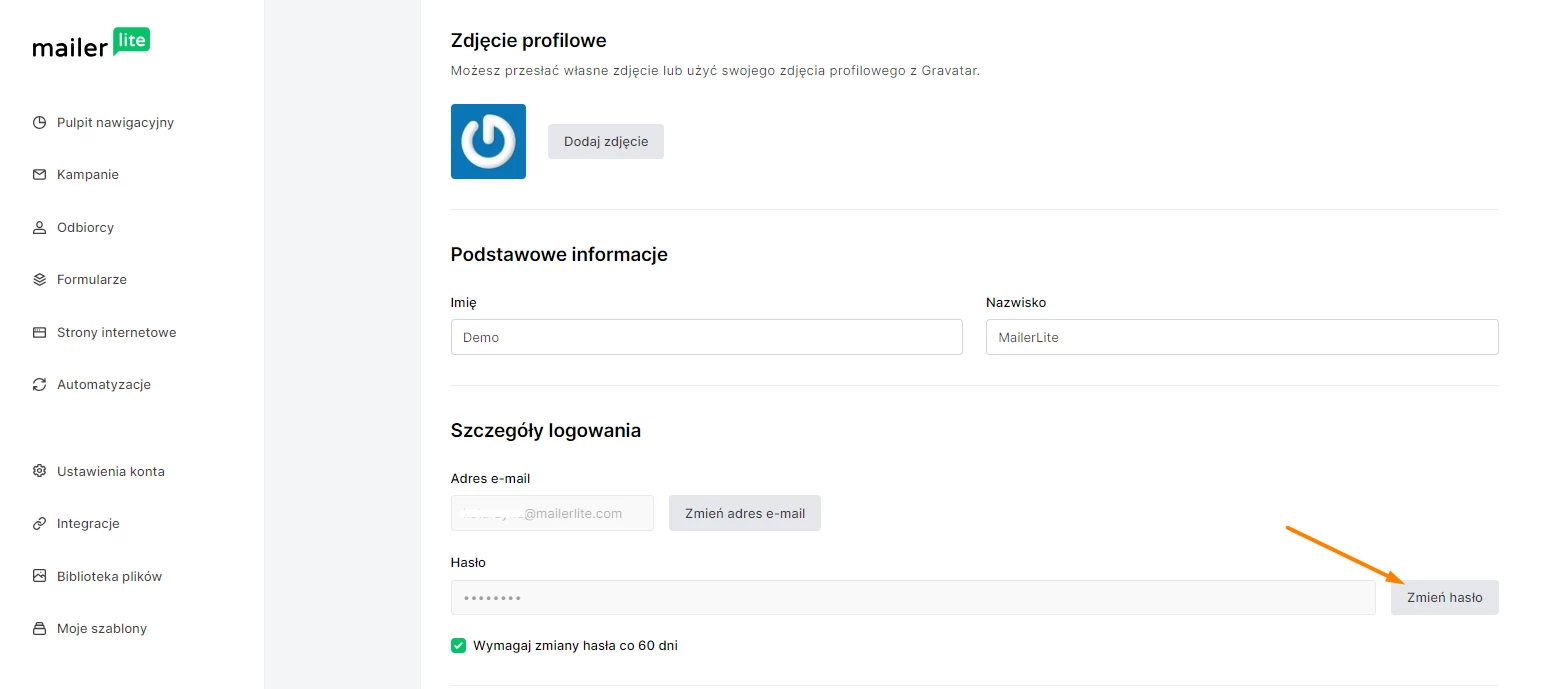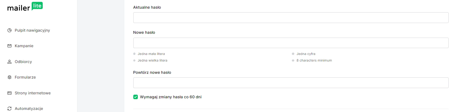 Uwaga: Zalecamy zmianę hasła co 60 dni, aby zmaksymalizować bezpieczeństwo konta.