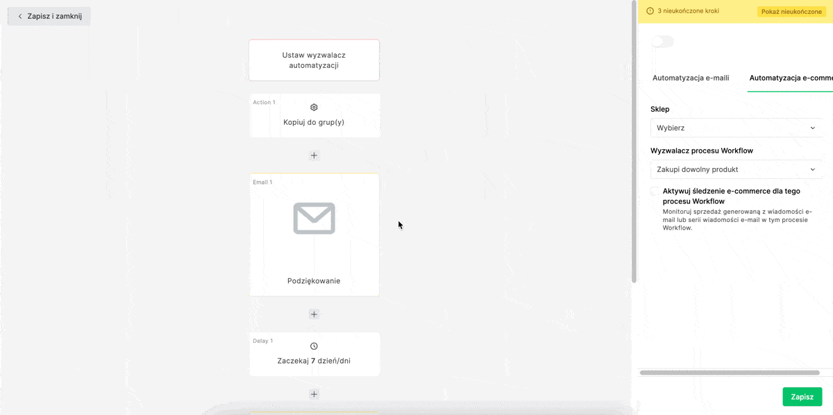 Uwaga: Aby zakup aktywował automatyzację, status zamówienia musi być Zakończony, a zakup opłacony.