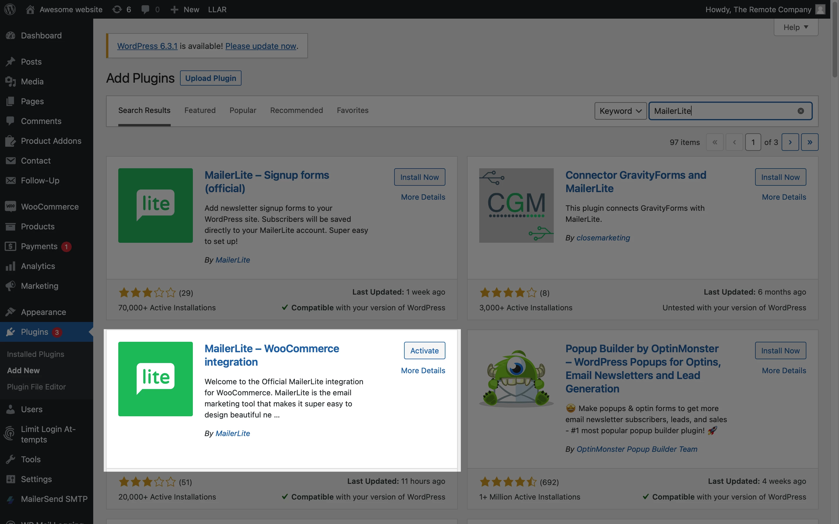 Aby zainstalować wtyczkę MailerLite dla WooCommerce: