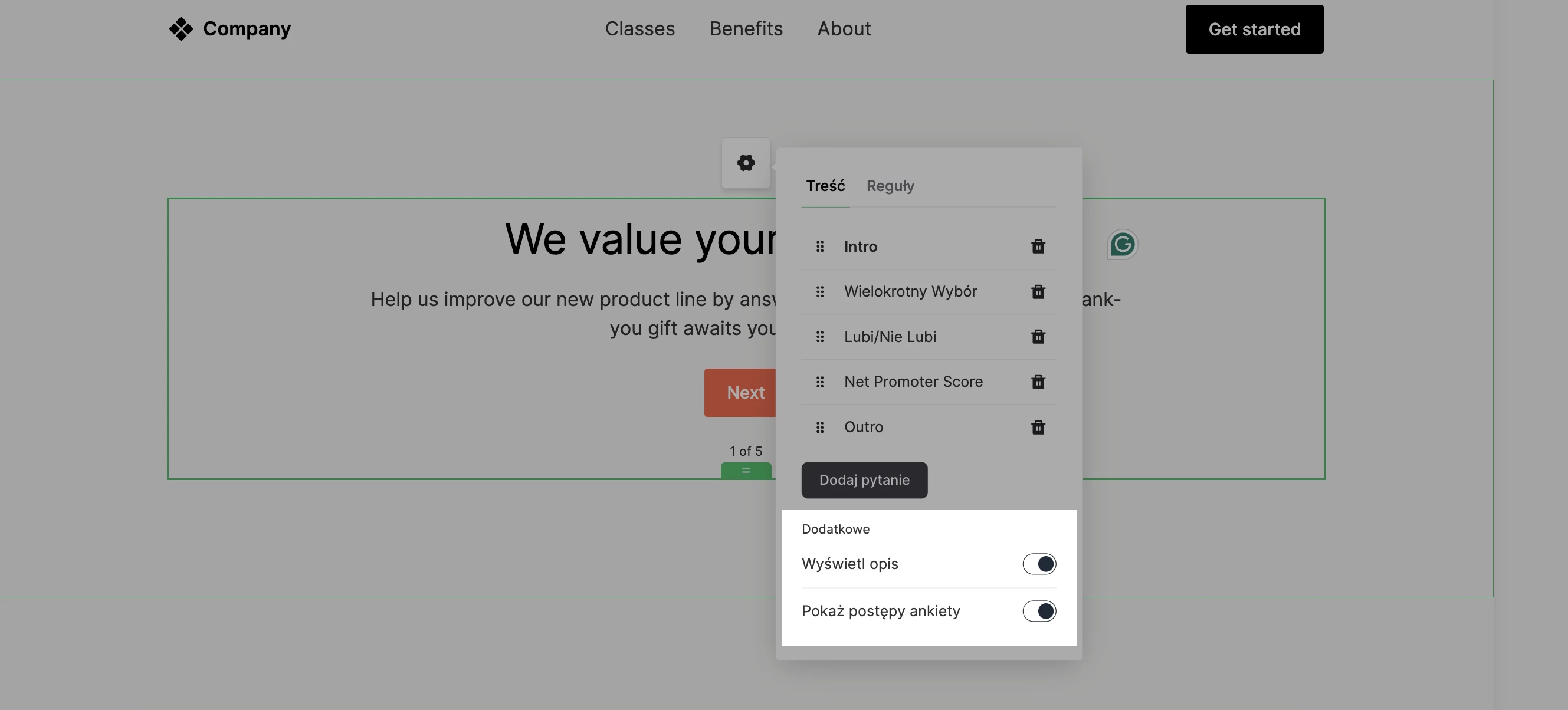 Możesz także zdecydować się na wyświetlanie postępu ankiety lub dodać opis.
