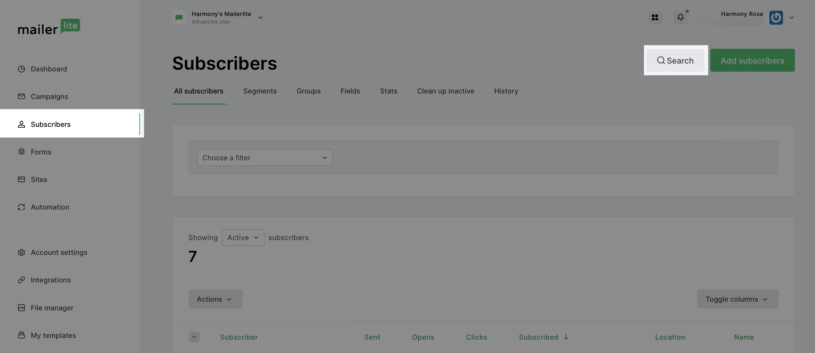 2. Wyszukaj subskrybenta po adresie e-mail za pomocą wyszukiwarki.