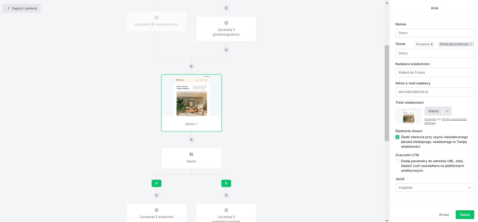 Aby włączyć/wyłączyć opcję śledzenia w automatyzacji wiadomości e-mail:
