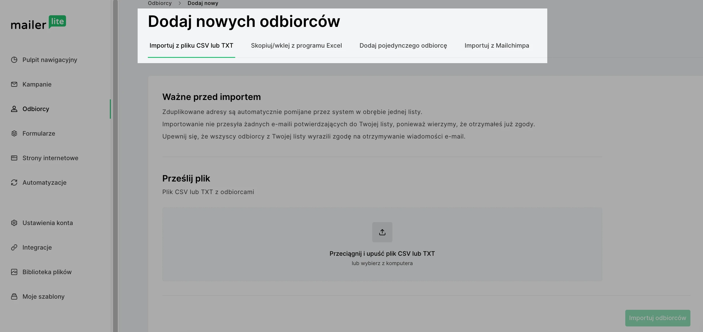 Aby zaimportować swoich subskrybentów do MailerLite: