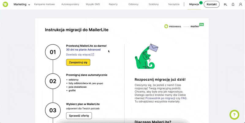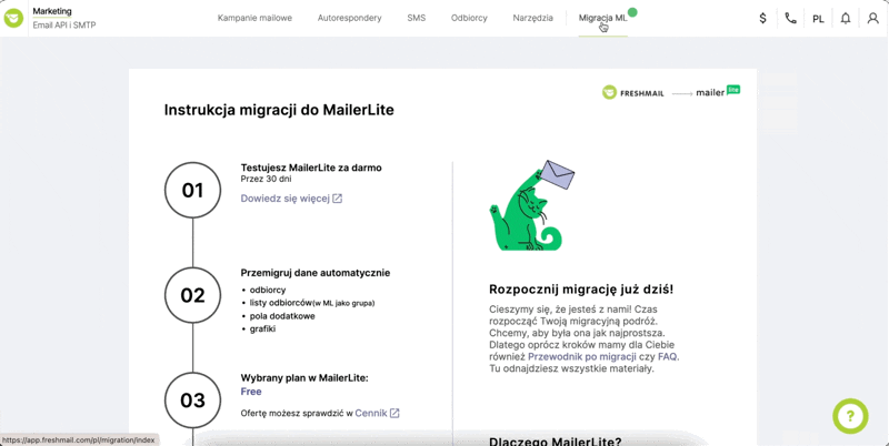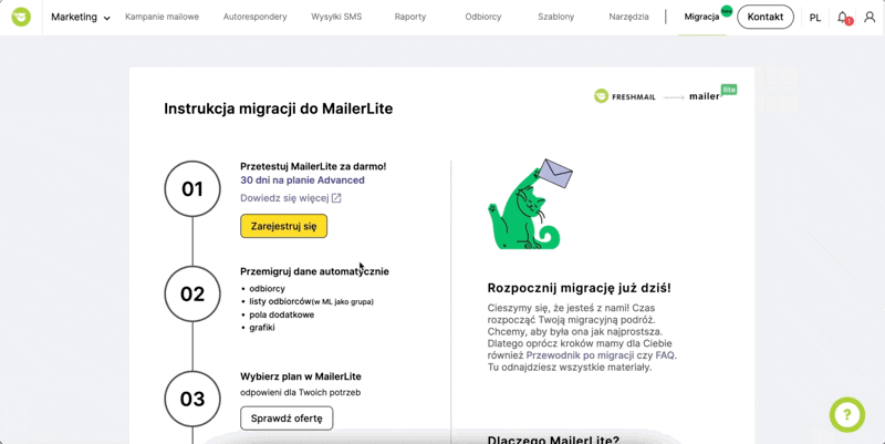 Na Twoim koncie we FreshMailu przejdź do zakładki Migracja.