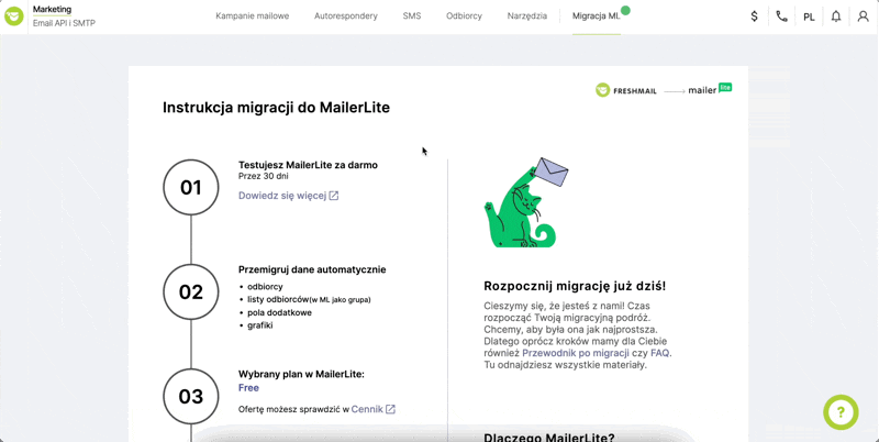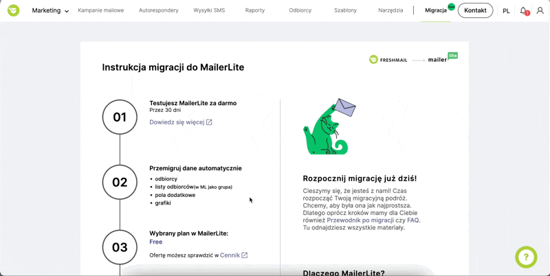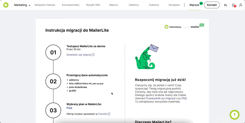 Chcę zmigrować dane z FreshMaila do MailerLite