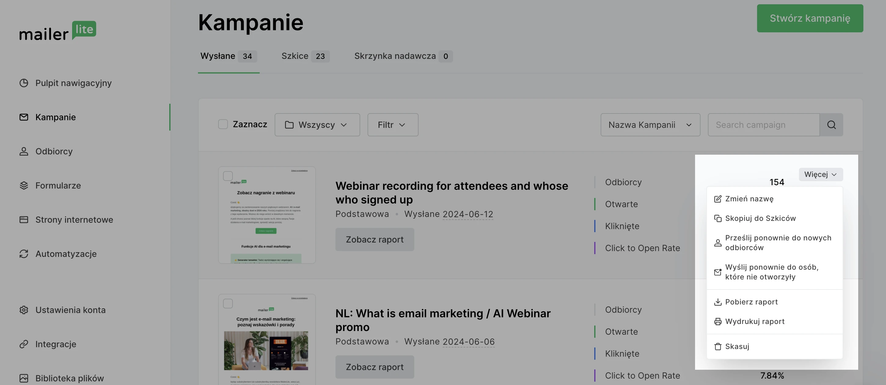 Jeśli kampania została już stworzona i wysłana i chcesz ponowić ją do osób, które jej nie otworzyły, możesz to zrobić ręcznie, korzystając z poniższej instrukcji:
