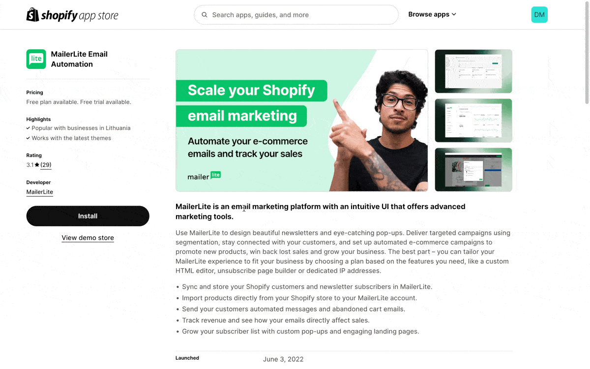 2. Wyszukaj MailerLite Email Automation by MailerLite.