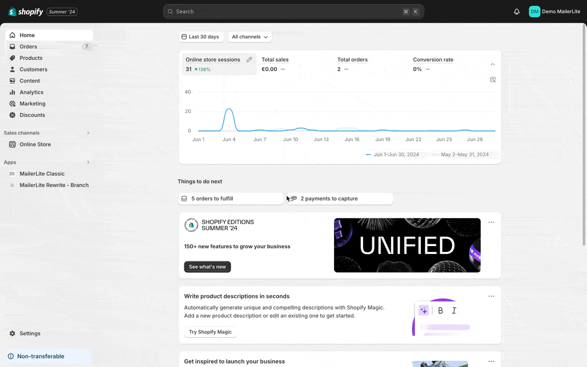 Funkcje dostępne w ramach integracji MailerLite z Shopify