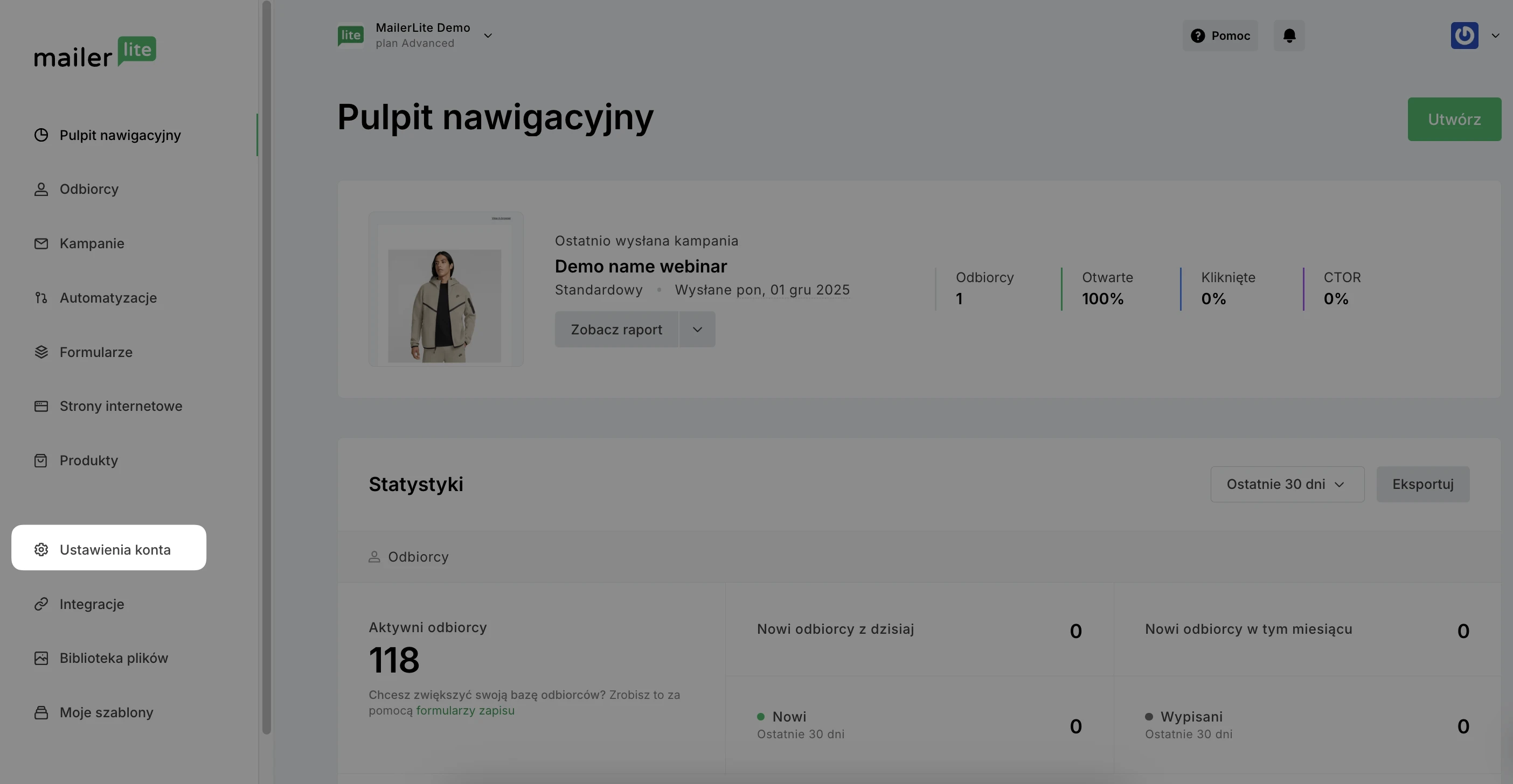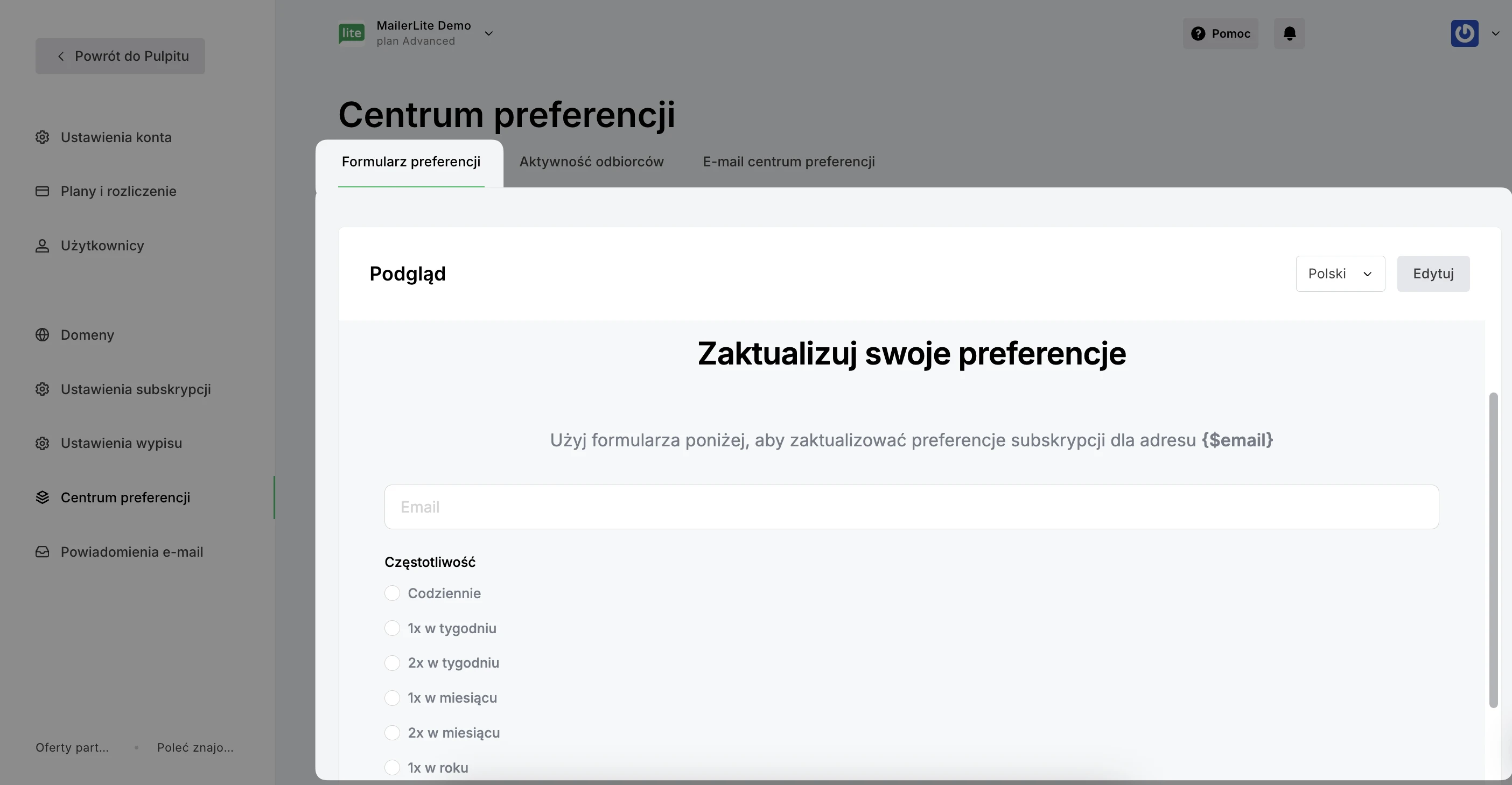 Informacja: Pamiętaj, że Centrum preferencji jest dostępne wyłącznie w ramach planu Advanced. Przeczytaj więcej o naszych płatnych planach.