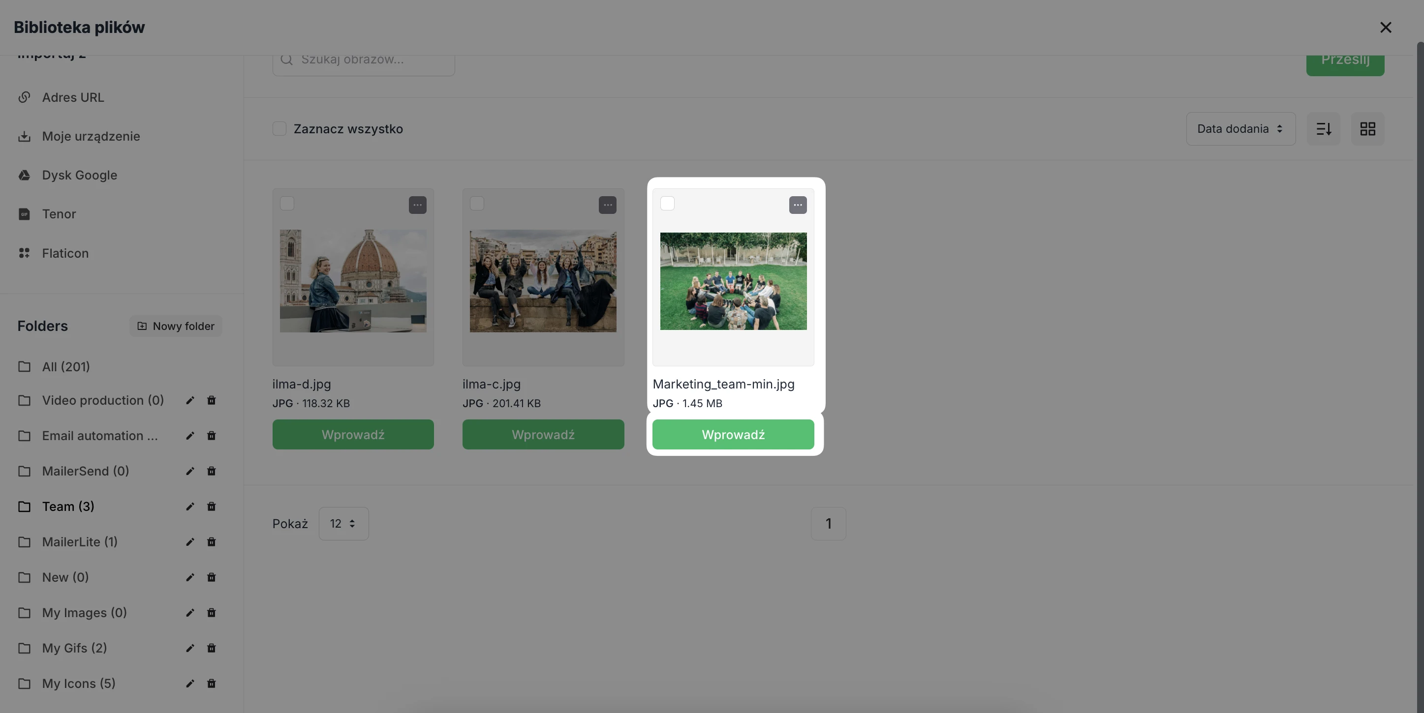 Spowoduje to przejście do Biblioteki plików, gdzie możesz wybrać istniejący obraz lub przesłać nowy plik z Twojego urządzenia.