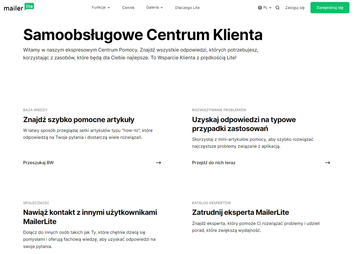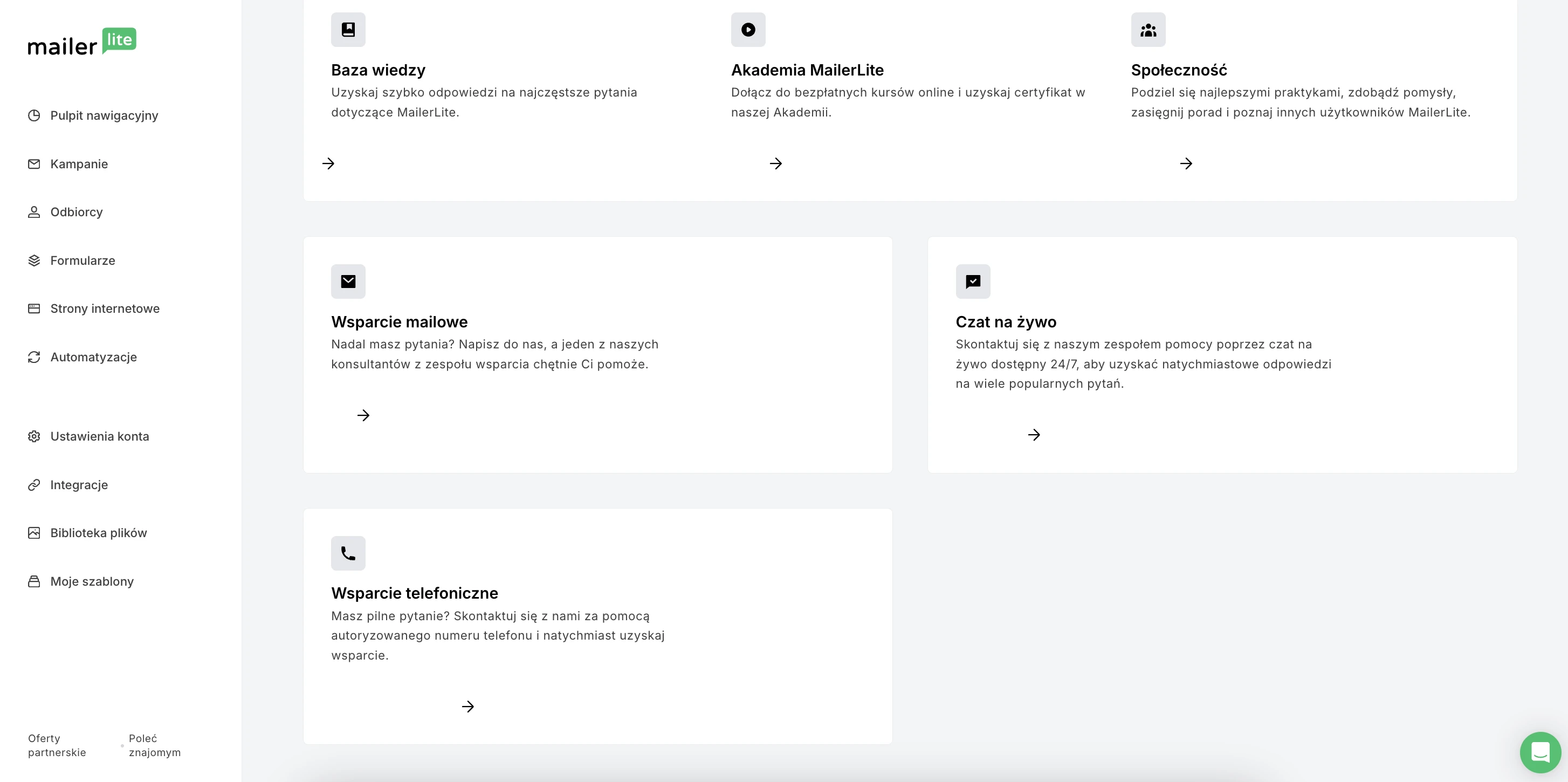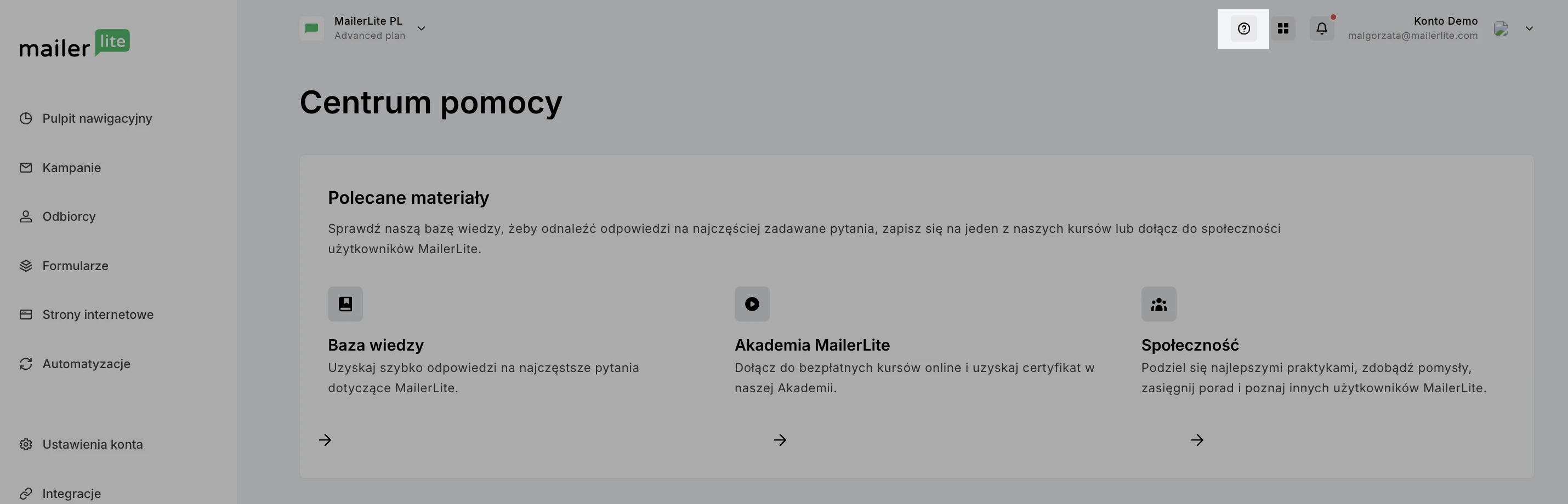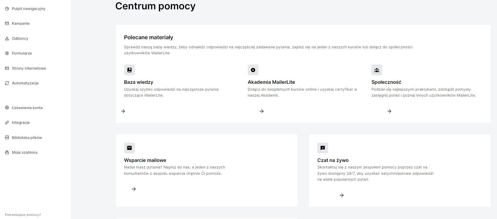 Nasze samoobsługowe centrum obsługi klienta to miejsce, w którym można znaleźć wiele zasobów, które pomogą Ci odnieść sukces w e-mail marketingu, niezależnie od poziomu umiejętności. Od artykułów z naszej bazy wiedzy, po przewodniki rozwiązywania problemów, samouczki wideo i naszą społeczność - mamy wszystko, czego potrzebujesz. Zachęcamy do zapoznania się z tymi zasobami w pierwszej kolejności, aby znaleźć odpowiedzi, których szukasz.