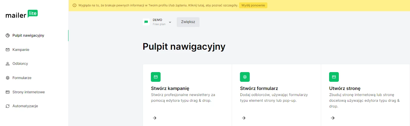 Jeśli zatwierdzenie konta zajmuje dużo czasu, koniecznym może być przesłanie dodatkowych informacji, aby przejść dalej. Wszystkie prośby o dodatkowe informacje można znaleźć w wiadomościach e-mail wysyłanych przez MailerLite na adres e-mail użyty do rejestracji.