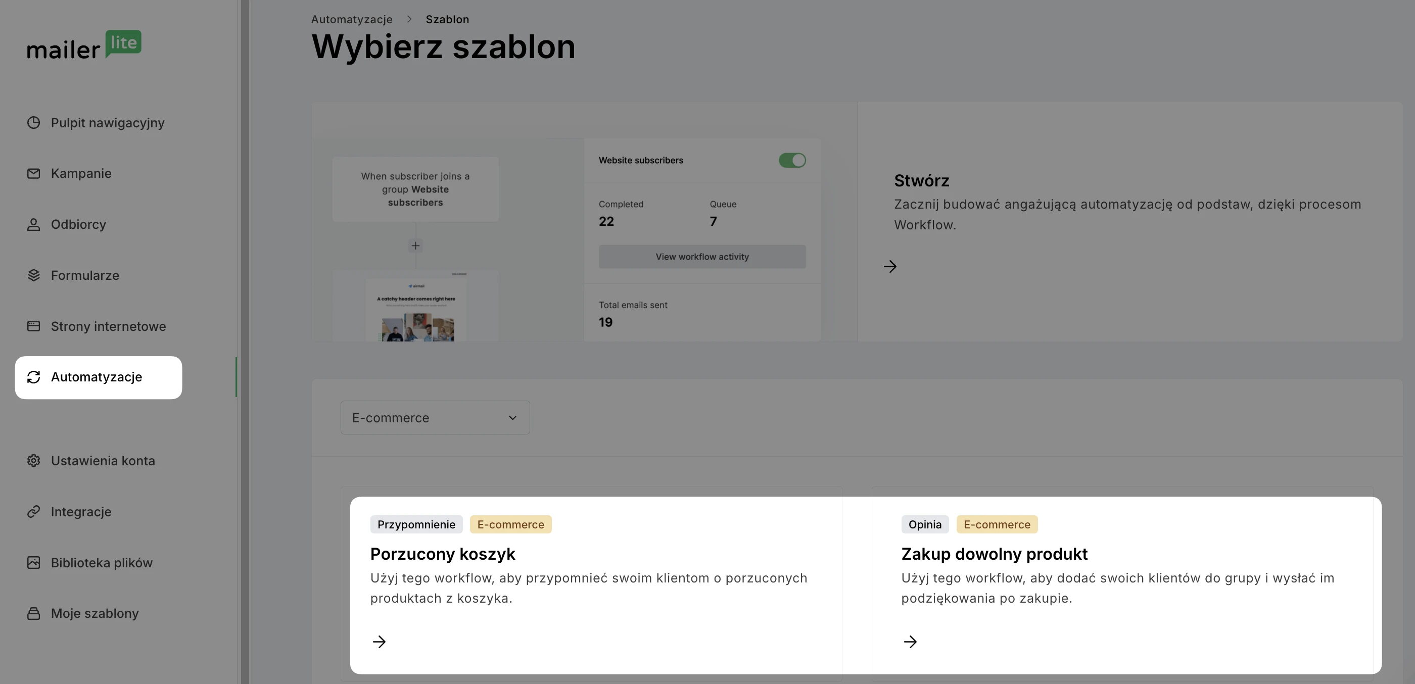 Automatyzacje, to jedna z najczęściej zgłaszanych funkcji, których brakowało użytkownikom FreshMaila. Choć można ją porównać do opcji Autoresponderów, w MailerLite ma o wiele większe zastosowanie. Do dyspozycji masz możliwość budowania całych ścieżek e-mail automation od zera lub wybór gotowego do użycia scenariusza z Biblioteki szablonów automatyzacji. Możesz ustawić wiadomości powitalne, retargetować odbiorców, wysyłać lekcje Twojego kursu on-line, zaproszenia na webinar, życzenia urodzinowe czy wiadomości do klientów e-commerce: porzucone koszyki i e-maile na podstawie dokonanego zakupu.