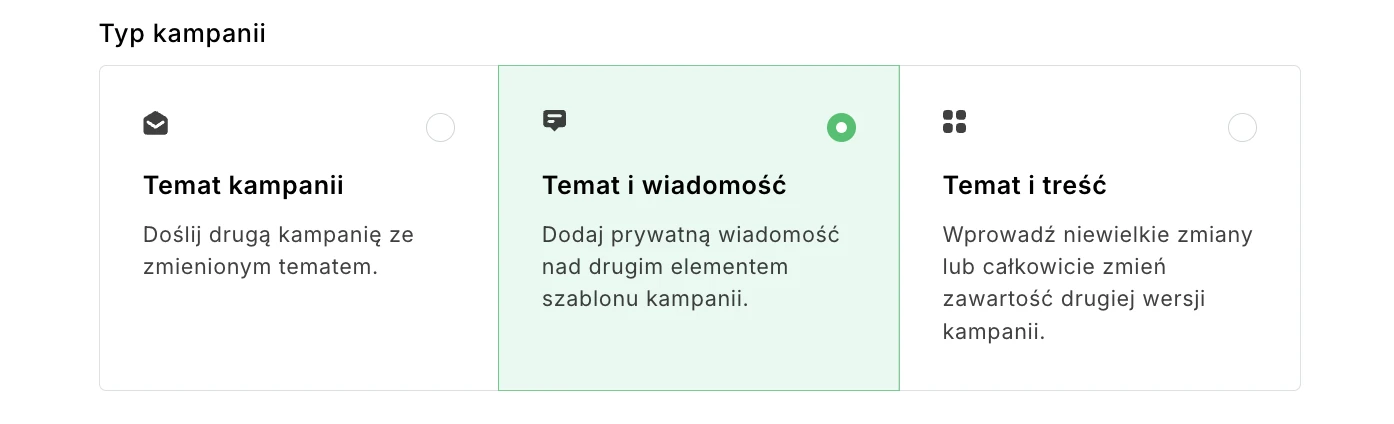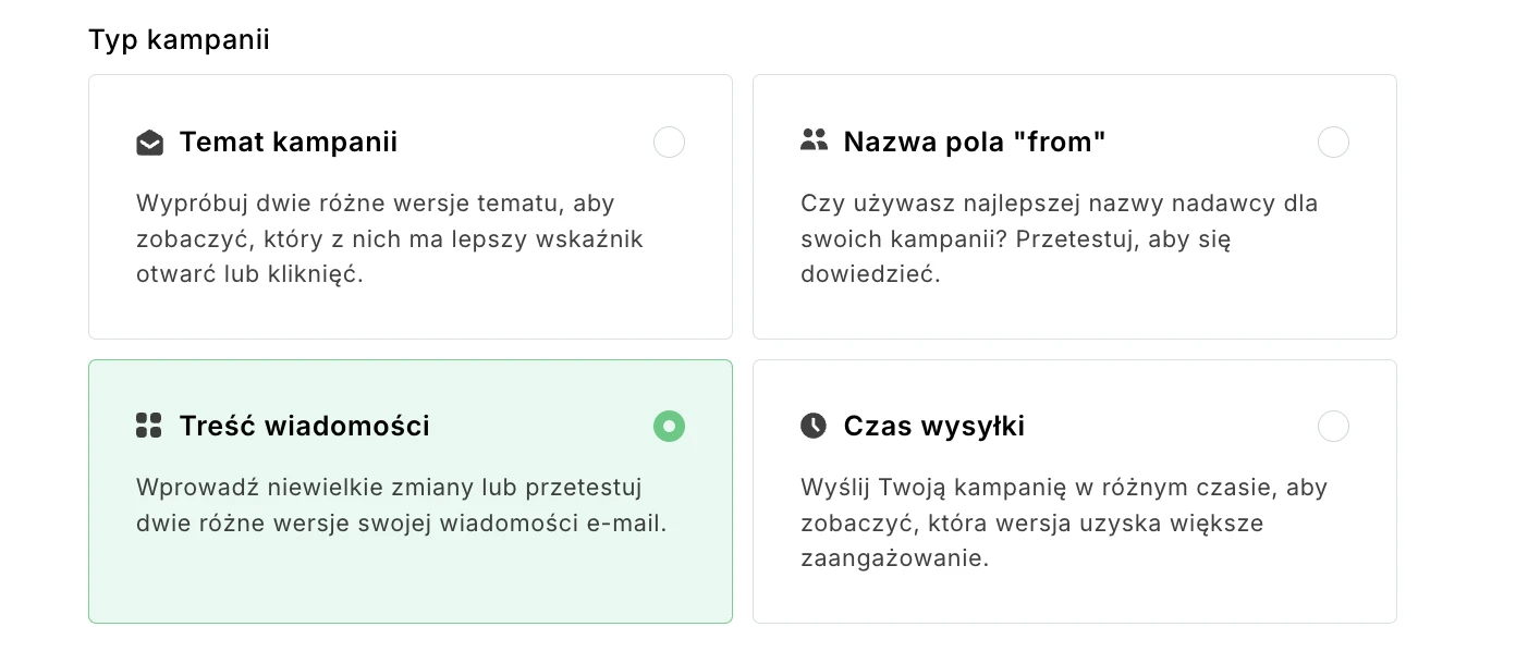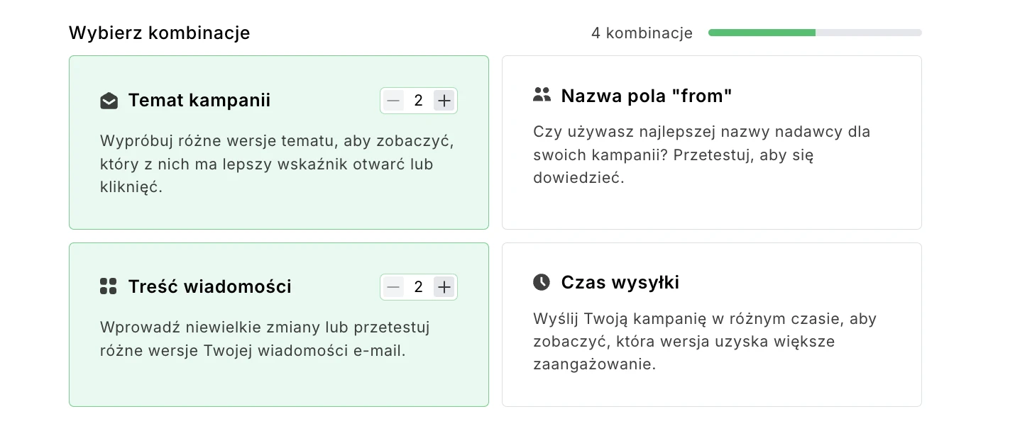 To rozbudowana wersja Testów A/B, która pozwala testować aż 8 wariantów kampanii opartych na różnych zmiennych, takich jak tematy, nazwy nadawców, treści i czasy wysyłki.