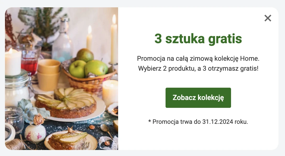 We FreshMailu dostępne są formularze w dwóch wersjach: element strony oraz pop-up. W MailerLite oprócz tych opcji formularzy zapisu masz również możliwość stworzenia pop-upu promocyjnego. To nowy typ, który ułatwia promowanie produktów czy specjalnych ofert. Tak, jak ten przykład poniżej: