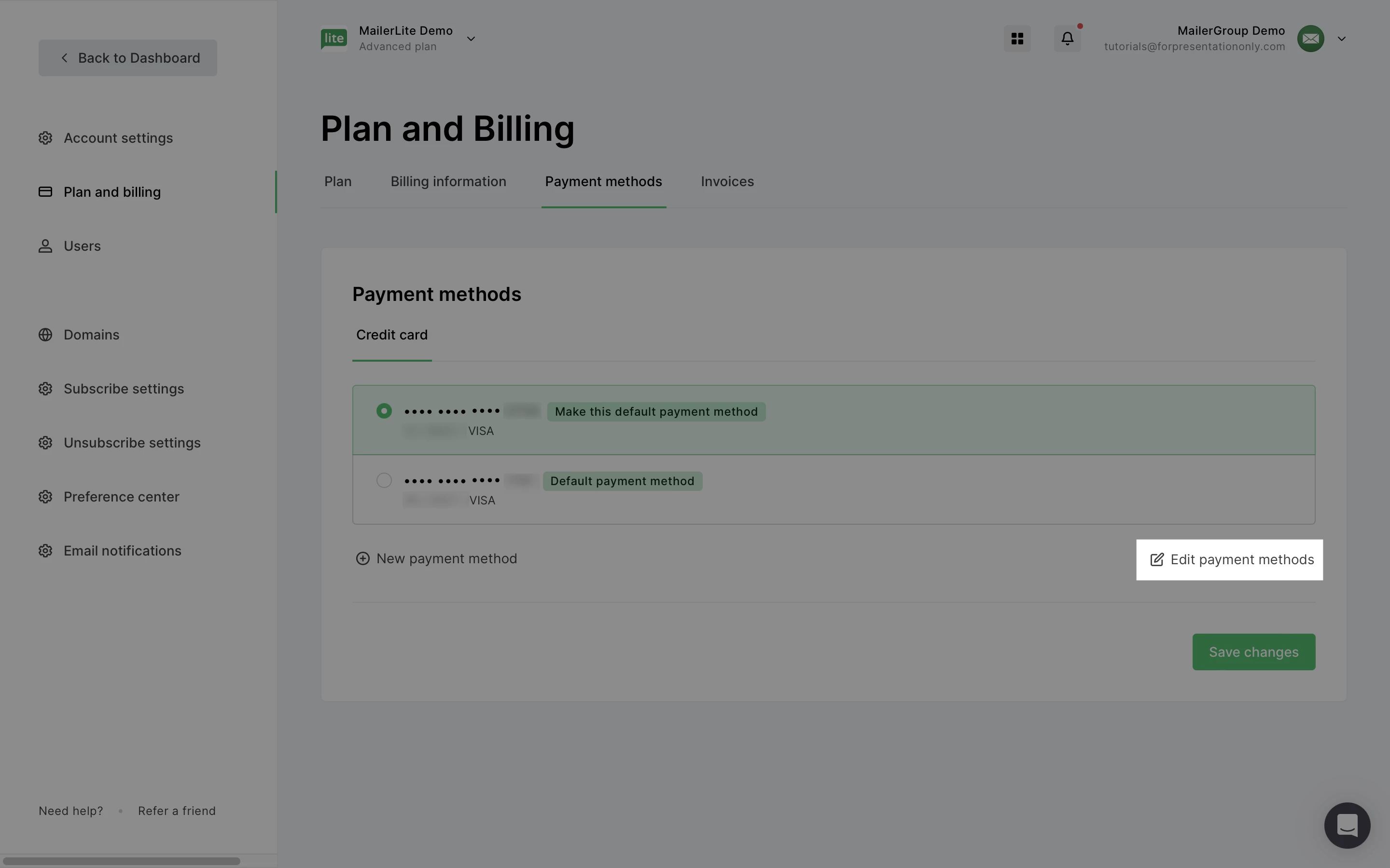 Aby zarządzać metodami płatności: