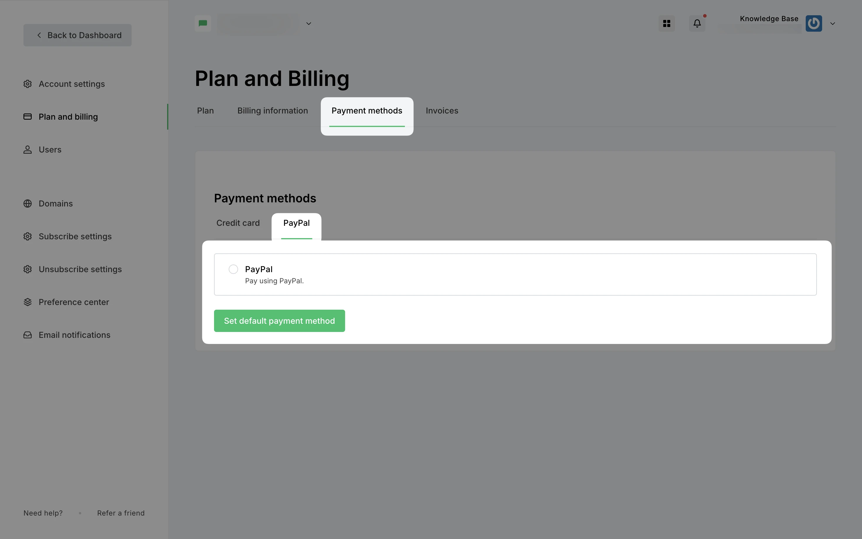 Przejdź do strony Ustawienia konta i wybierz zakładkę Plany i rozliczenie.