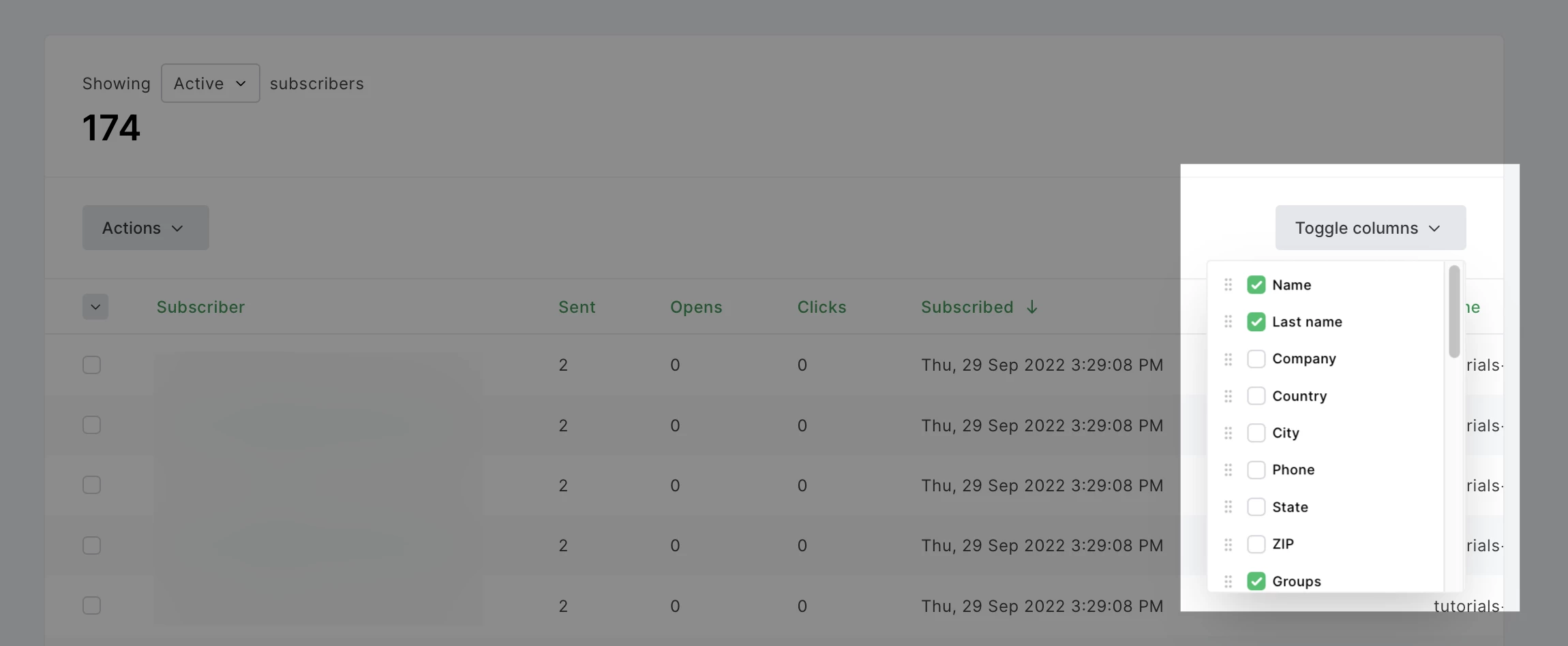 Więcej informacji na temat eksportowania listy odbiorców można znaleźć w naszym przewodniku na temat eksportu subskrybentów.