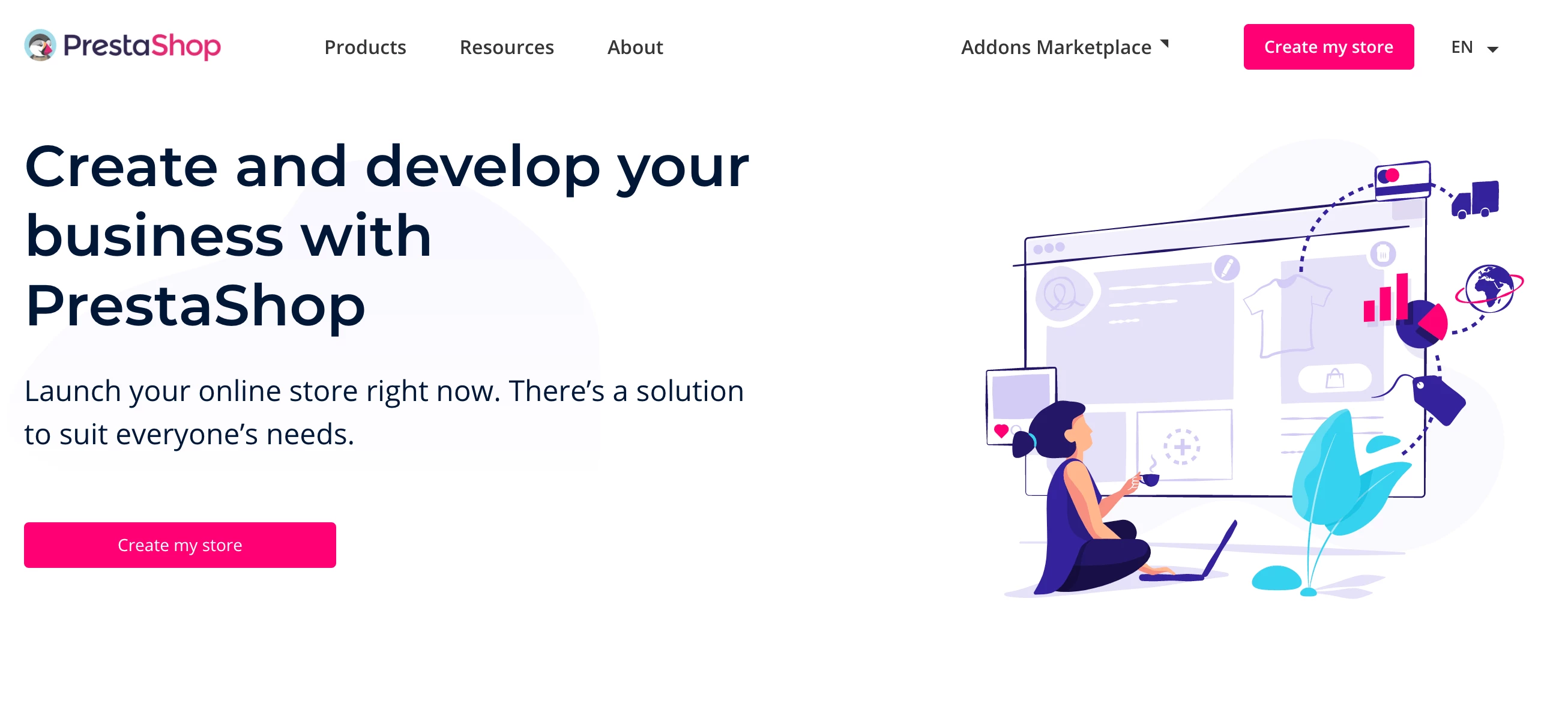 PrestaShop is an e-commerce platform where you can build your website and manage your online store, including payments, shipping, stock inventory, and more.