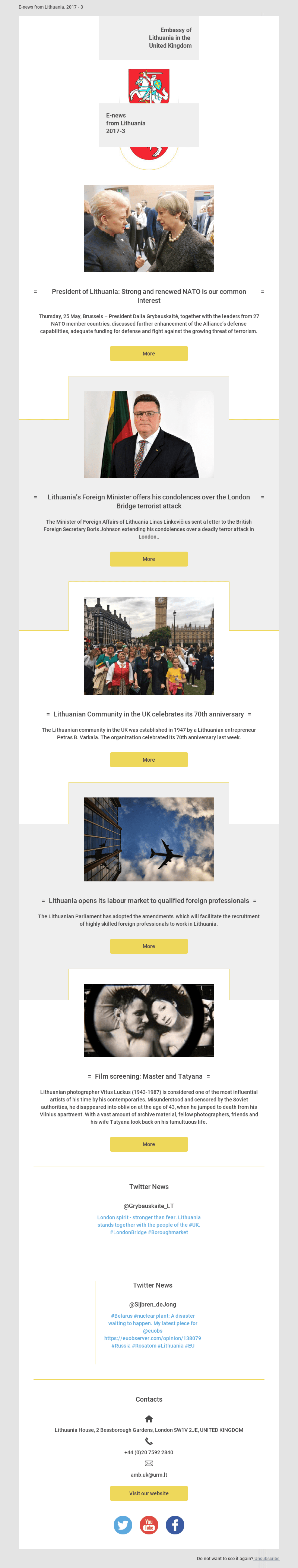 Embassy of Lithuania custom template przykład - Stworzony przy użyciu MailerLite