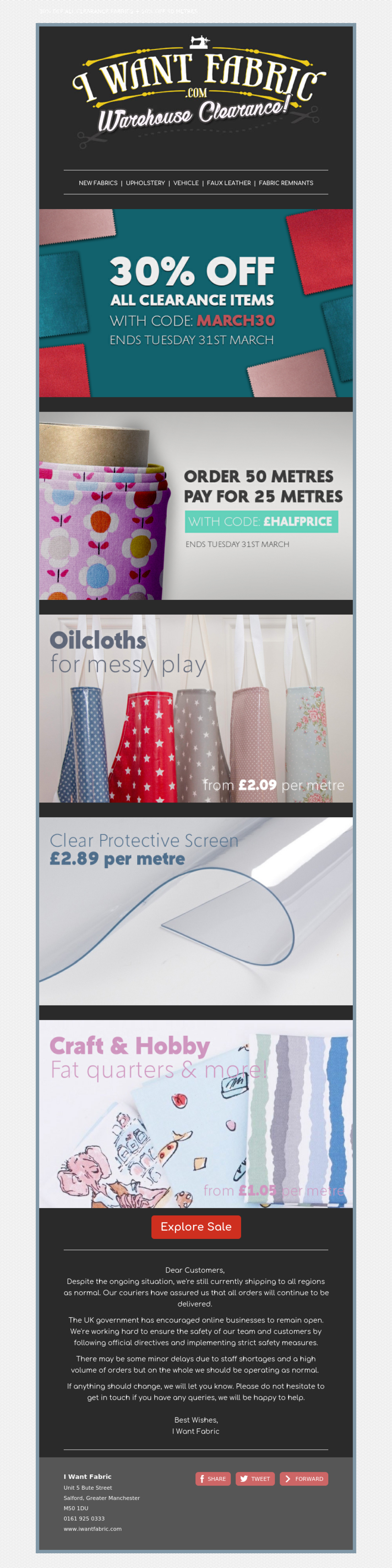 I Want Fabric przykład - Stworzony przy użyciu MailerLite