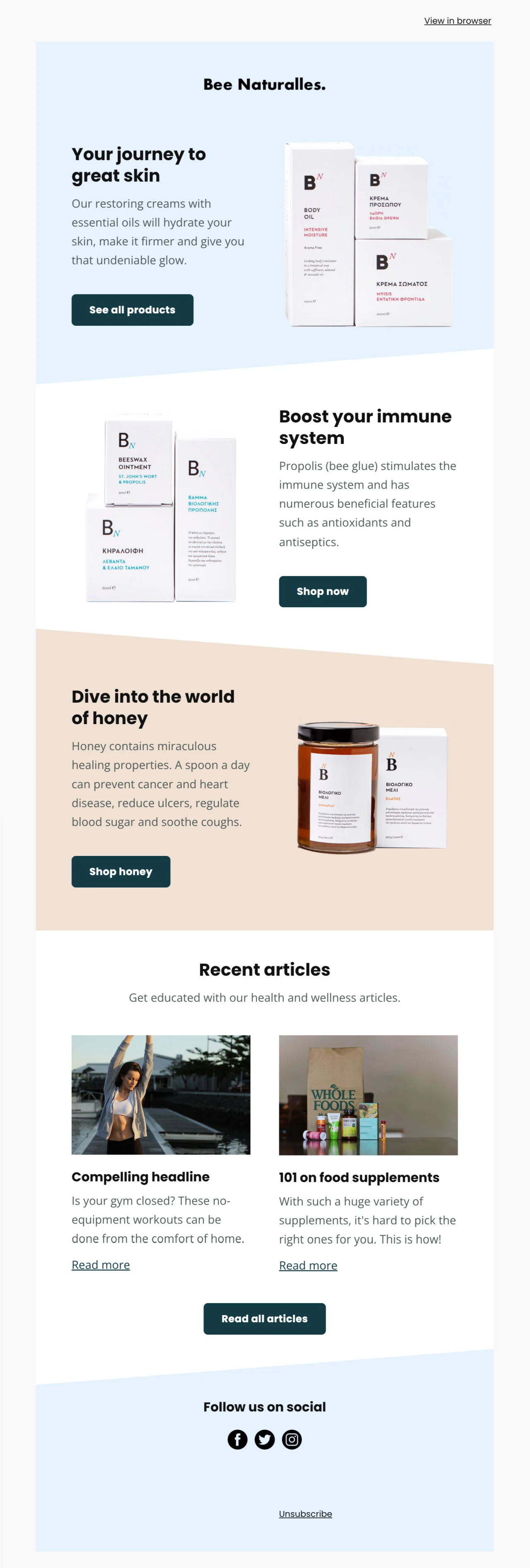 Szablon e-maila "Pielęgnacja ciała i lifestyle" to doskonały sposób na przekazanie klientom wartościowych porad i produktów, które wspierają zdrowie i urodę. Podkreśl znaczenie codziennej pielęgnacji, oferując produkty, które poprawiają samopoczucie. Buduj zaangażowanie poprzez inspirującą komunikację, która łączy pielęgnację z codziennym stylem życia.