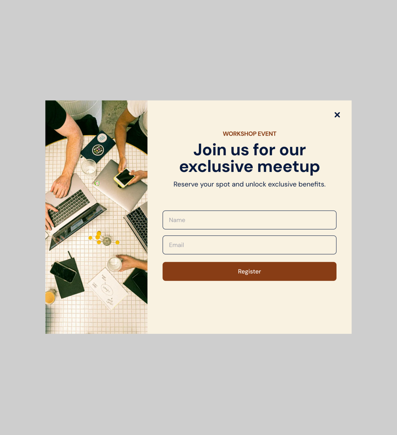 Odkryj szablon pop-up Zapisy na warsztaty, stworzony z myślą o efektywnym gromadzeniu uczestników na Twoje wydarzenia. Jego nowoczesny design i intuicyjna personalizacja ułatwiają rejestrację, zwiększając zaangażowanie potencjalnych uczestników. Dostosuj ten szablon w MailerLite, aby skutecznie promować swoje warsztaty i zarządzać zapisami!