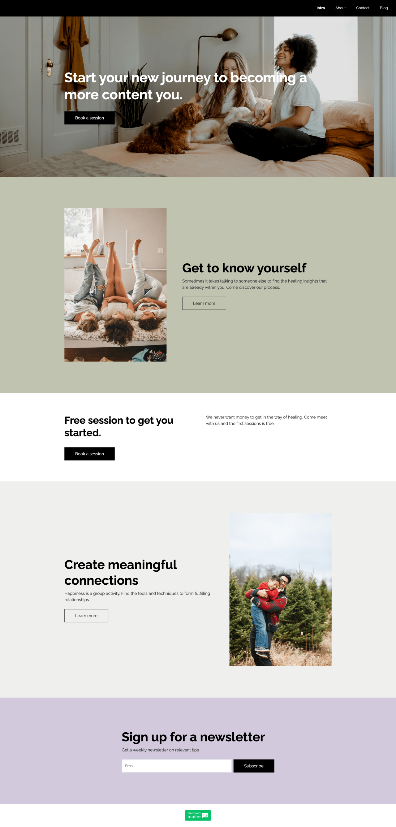 Sprawdź to therapist szablon strony internetowej. Przejrzyj naszą galerię szablonów strony, zainspiruj się i zacznij tworzyć swoją własną stronę w MailerLite już dziś.