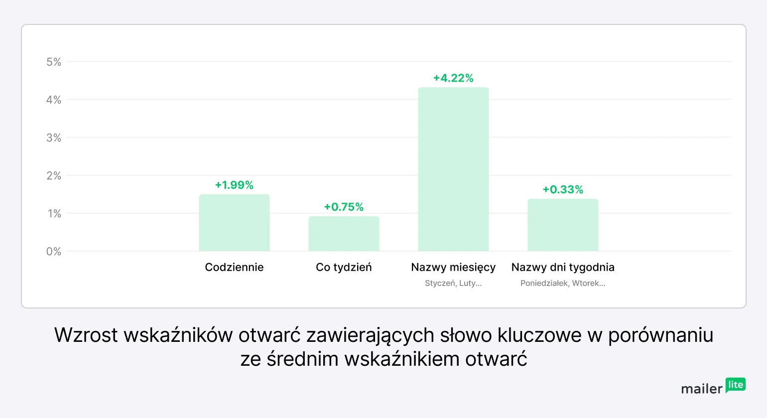 Odkryliśmy również, że wykorzystanie liczb w temacie ma wpływ na Open Rate.