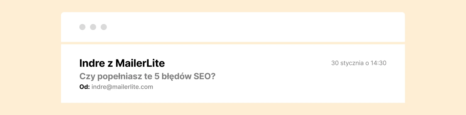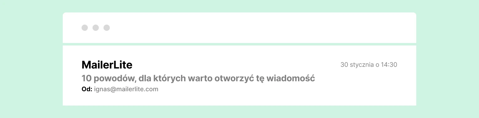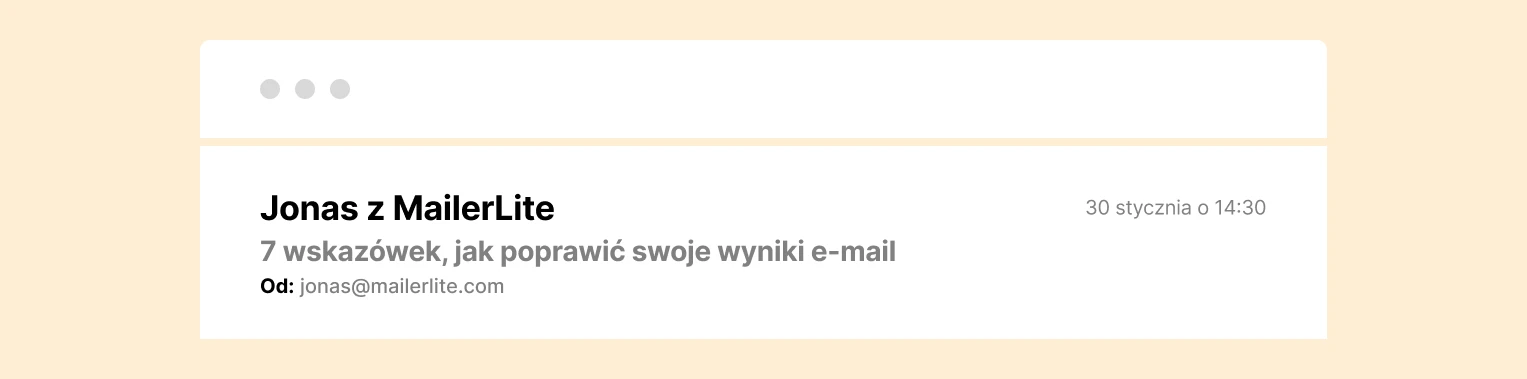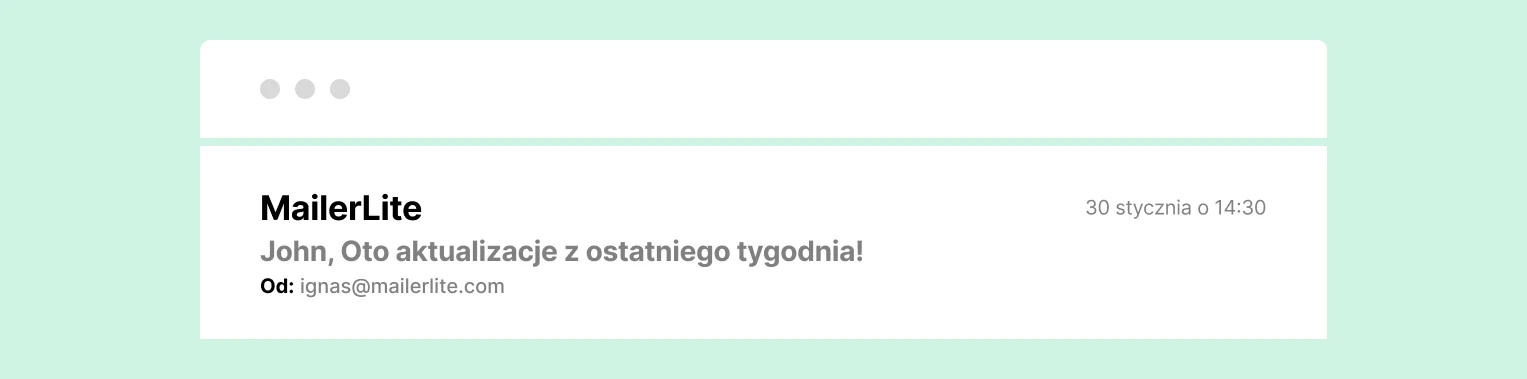 Na przykład „Jonas z MailerLite” działa dobrze, ponieważ czytelnik rozpoznaje firmę, a imię dodaje osobistego charakteru.