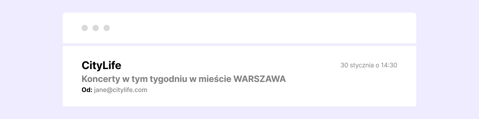 💡 Do zapamiętania: przy wysyłce takich kampanii, ważna jest dobra segmentacja grupy odbiorców, by nie wysyłać ludziom z Sydney informacji o wydarzeniach w Radomiu.
