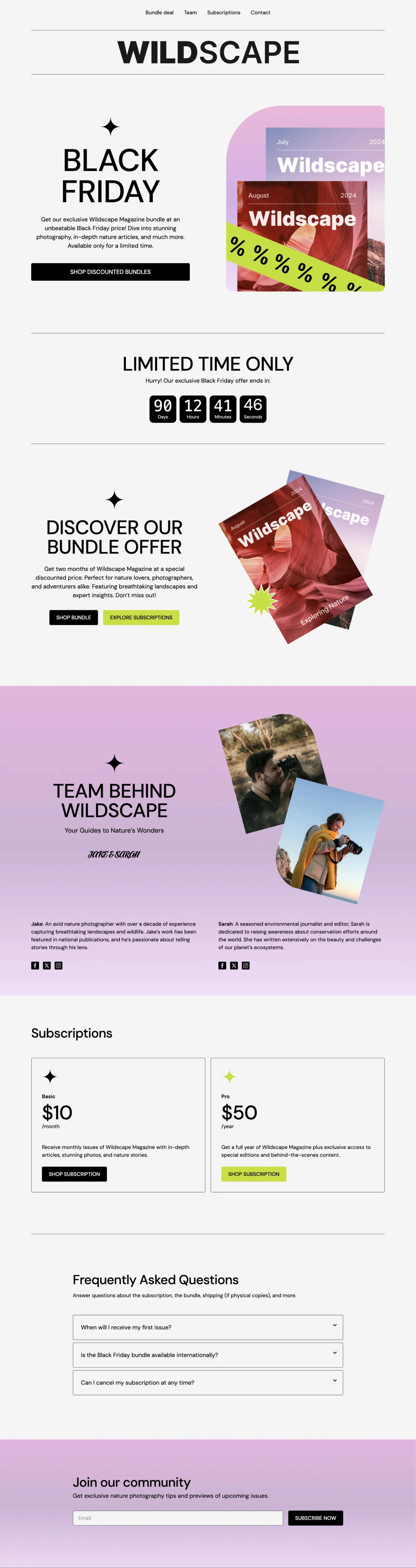 Check out this Black Friday landing page template to get a head start on your holiday sales. Use this to create a high-converting landing page that drives sales and captures new subscribers before the shopping frenzy begins.