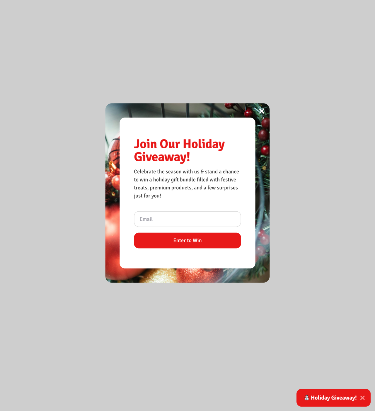 Check out this holiday giveaway pop-up template. Browse through our pop-up template gallery, get inspired and start creating your own MailerLite pop-ups today.