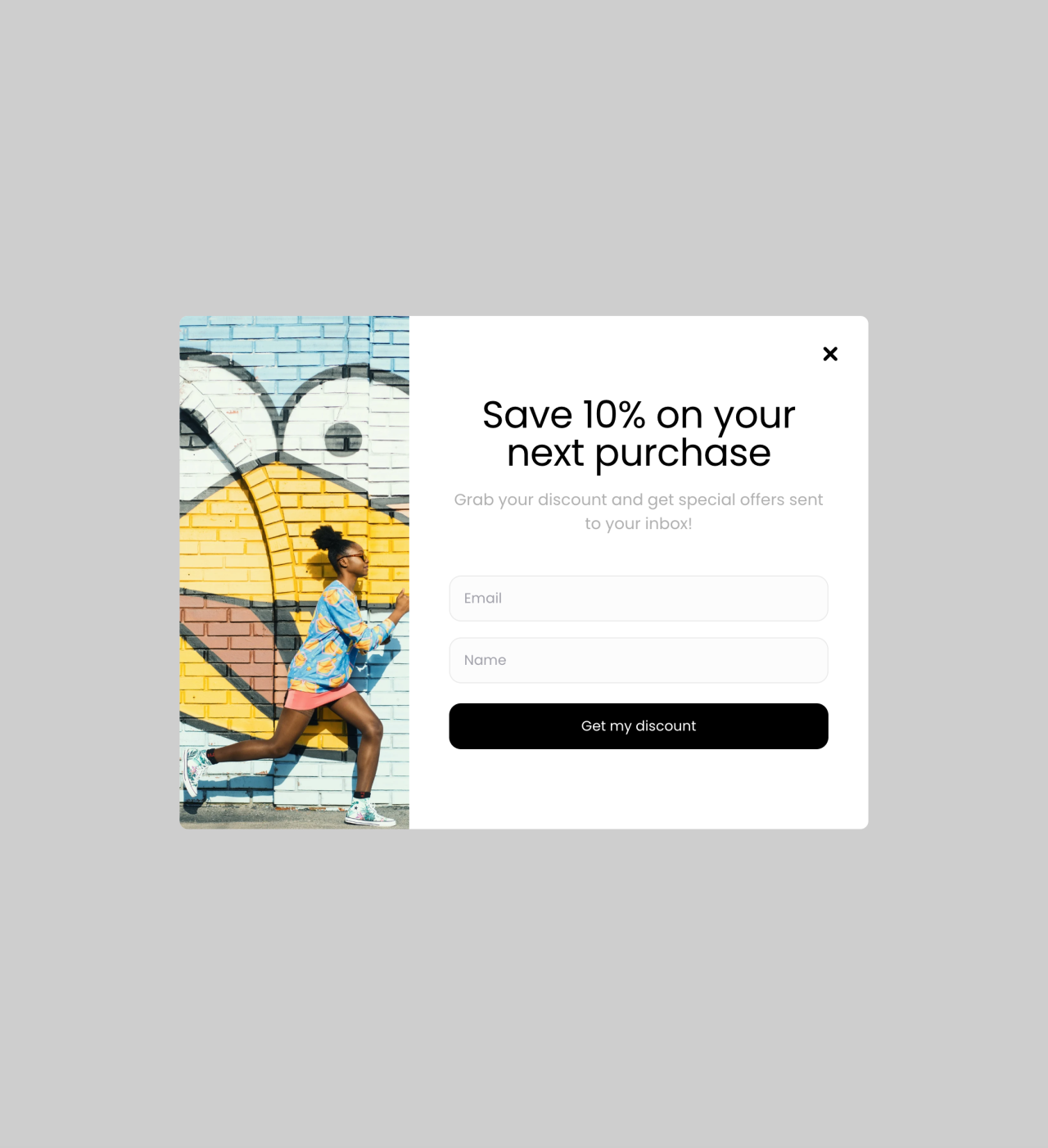 Check out this next purchase pop-up template. Browse through our pop-up template gallery, get inspired and start creating your own MailerLite pop-ups today.