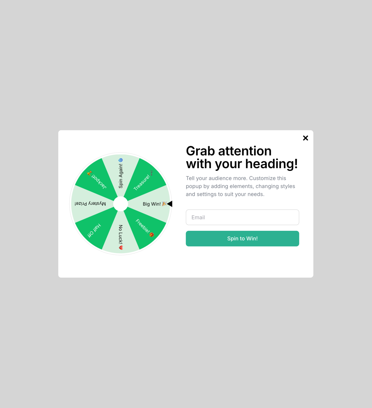 Spin the wheel pop-up template