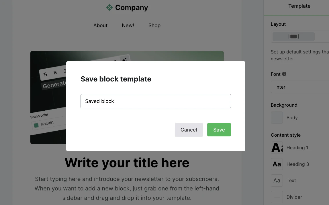 Another way to stay consistent is to save frequently used blocks and then reuse them in each email you send. This ensures a consistent on-brand design while speeding up the email design process.