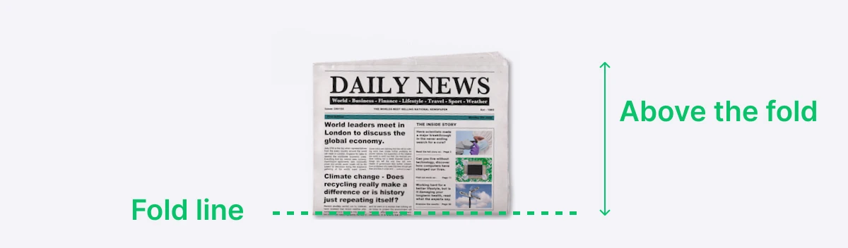 When used to refer to digital content, above the fold is the content that people can see when they open the webpage or email before starting to scroll.