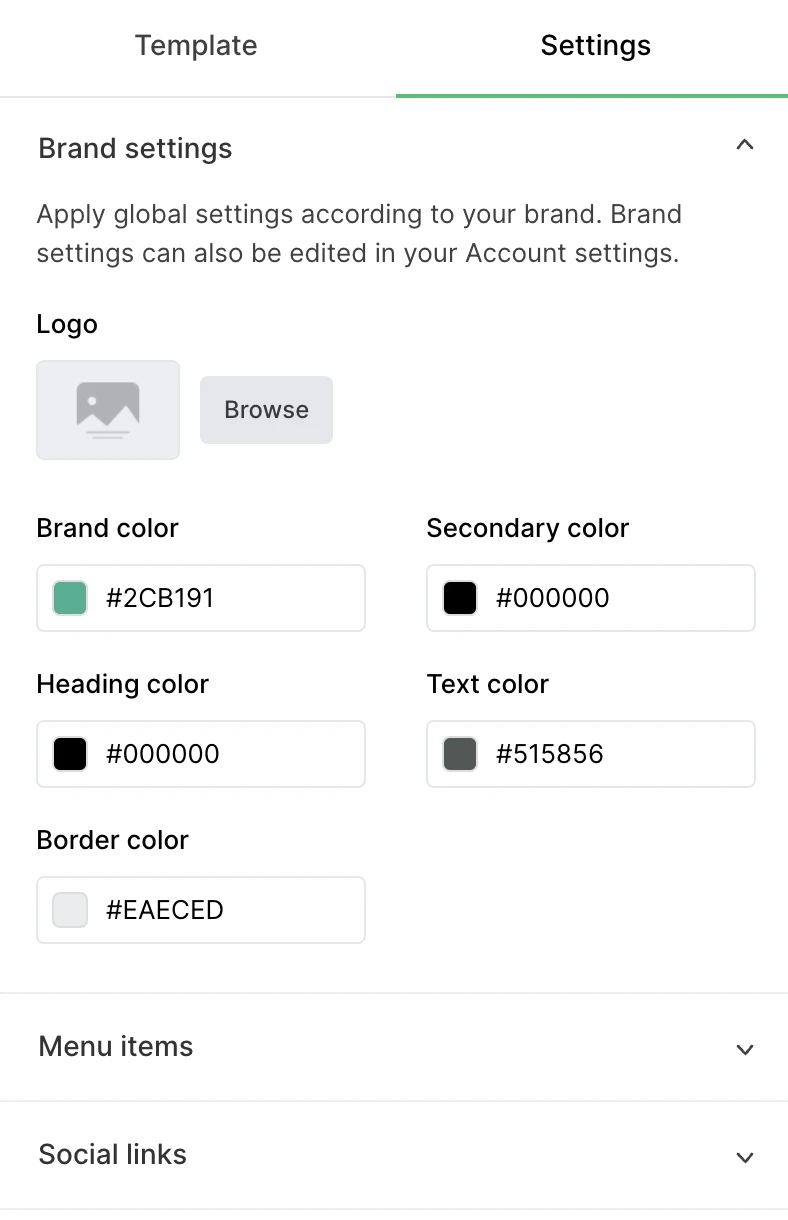 This is easy to do within the brand settings part of your dashboard. Once you’ve updated the colors, they will be automatically reflected whenever you add an element to your email.
