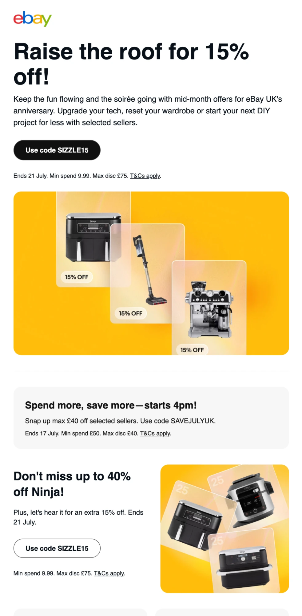 Meanwhile, the offer details are in smaller text so the reader can get extra information once they’ve had their attention drawn to the sale.