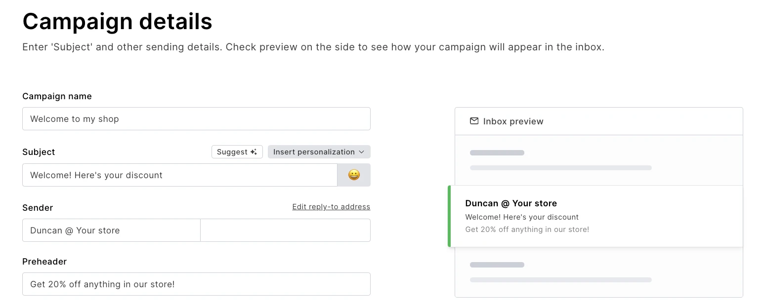 Optimize the sender name by choosing something recognizable. You could also add a personal touch by using a real person’s name alongside the name of your business, such as Duncan @ MailerLite.