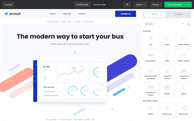 Once you’re done editing, click the Save and publish button; or click the adjacent downward-facing arrow to save your landing page as a draft.